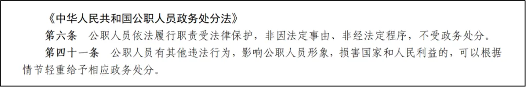 【注意】除《政务处分法》外,其他法律、法规、规章中明确规定对公职人员的某些违法行为“依法给予处分”“应当给予处分”“给予行政处分”“给予处分”或者给予××(具体处分种类)处分的,相应规定可以作为监察机关作出政务处分的依据。