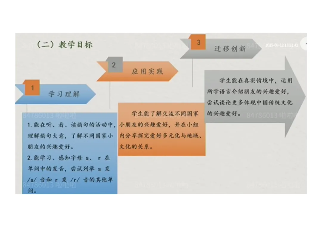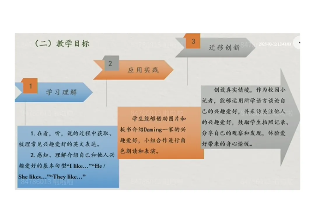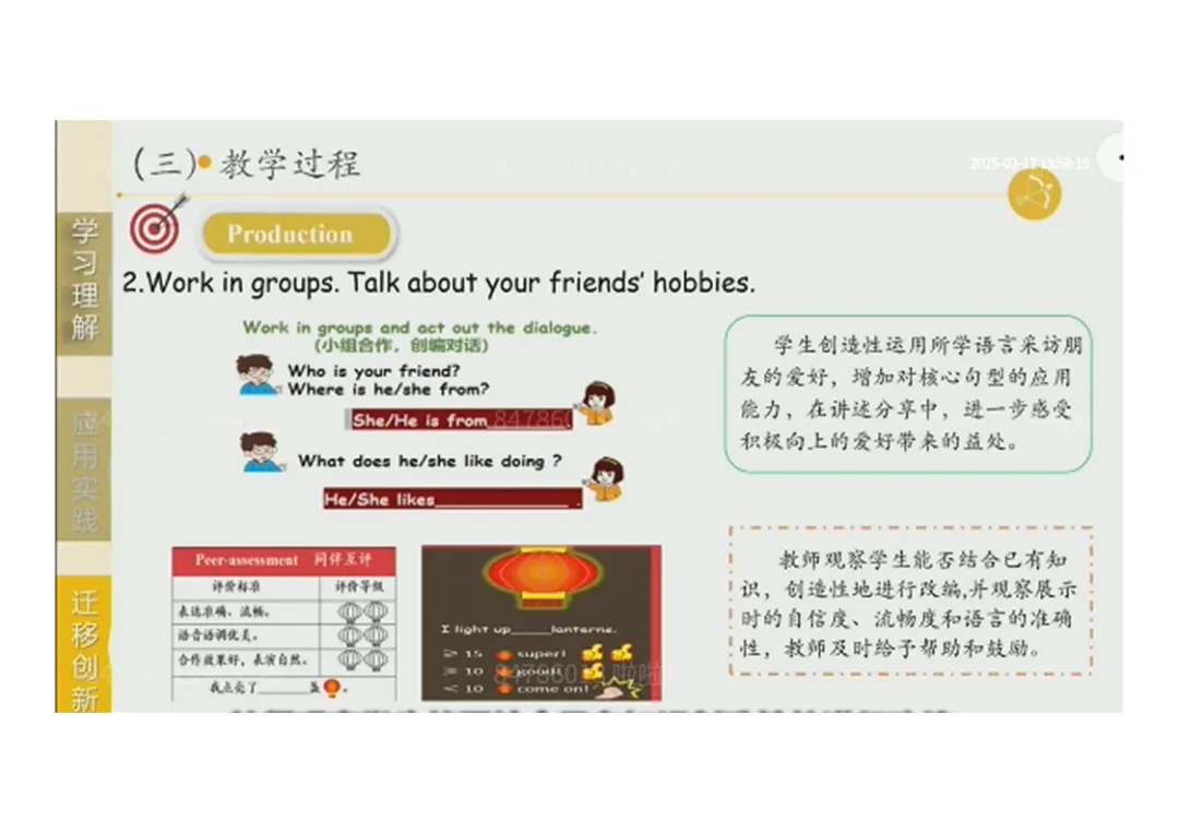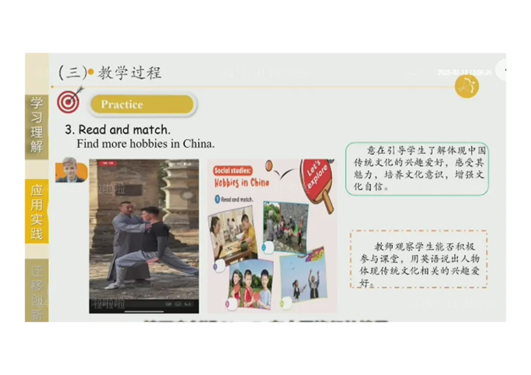 3.迁移创新:在真实情境中介绍朋友爱好,谈论中国传统爱好。