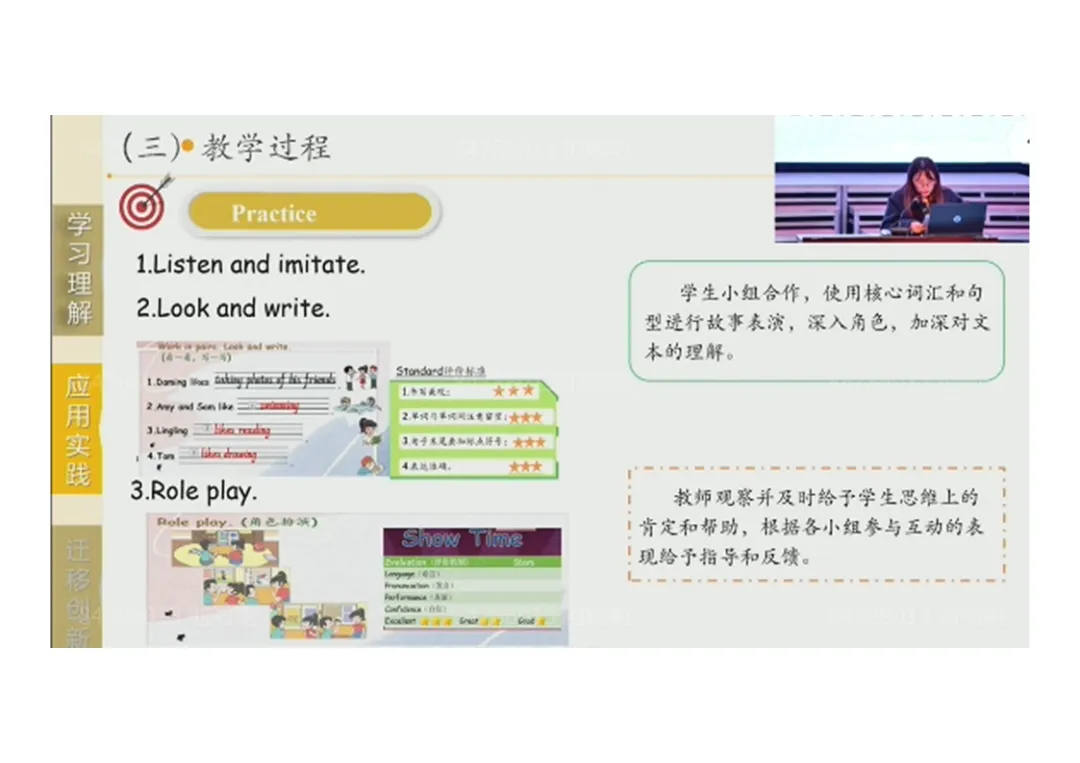2.Practice:听音模仿→书写练习→角色扮演,深化文本理解;
