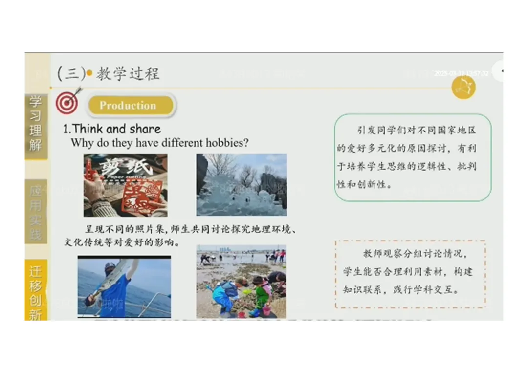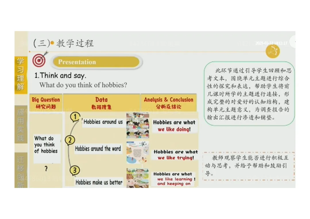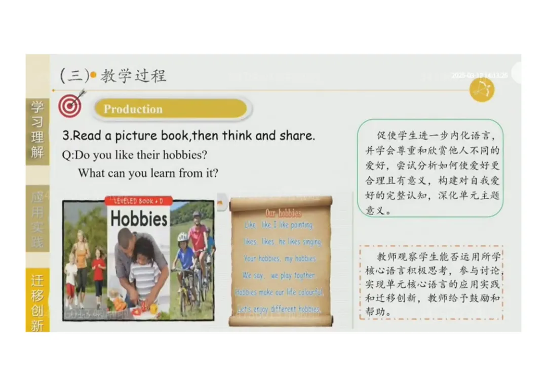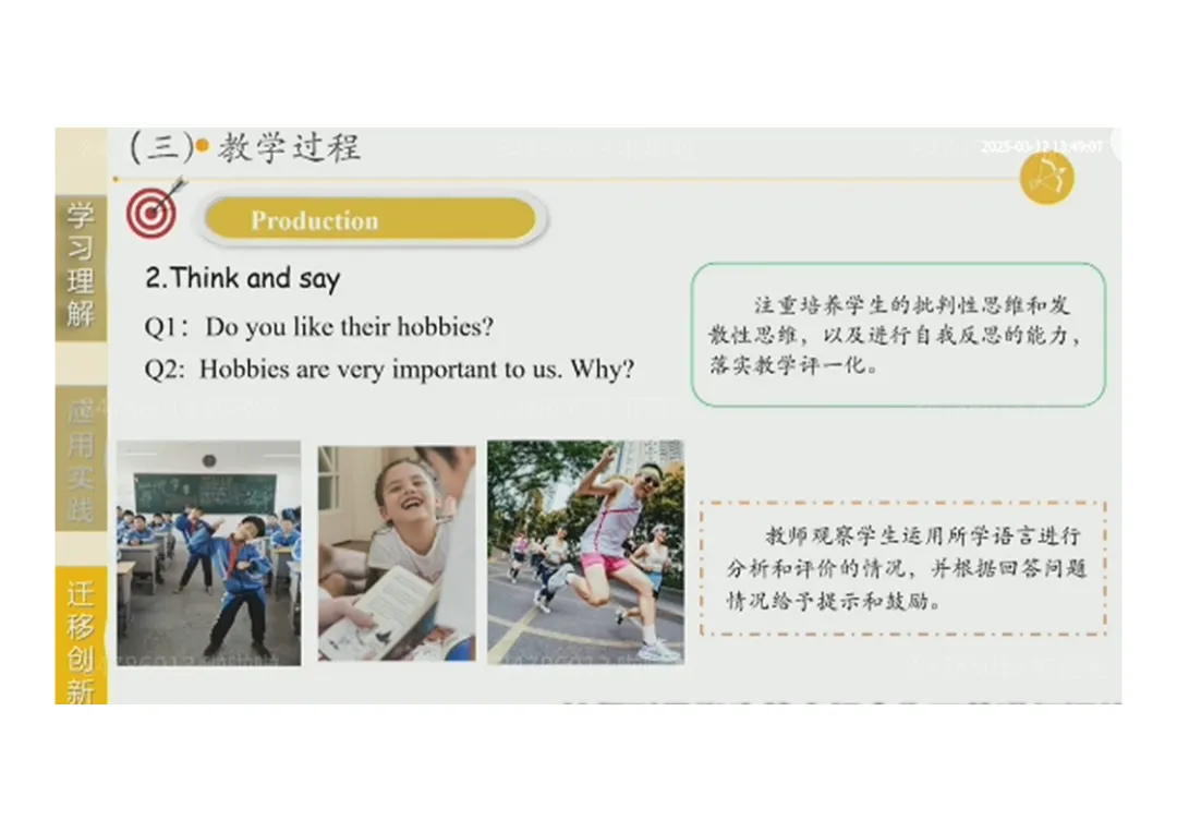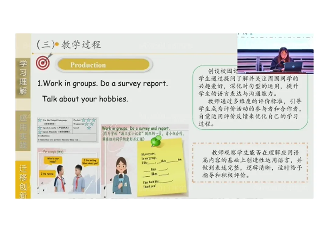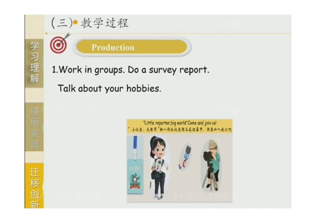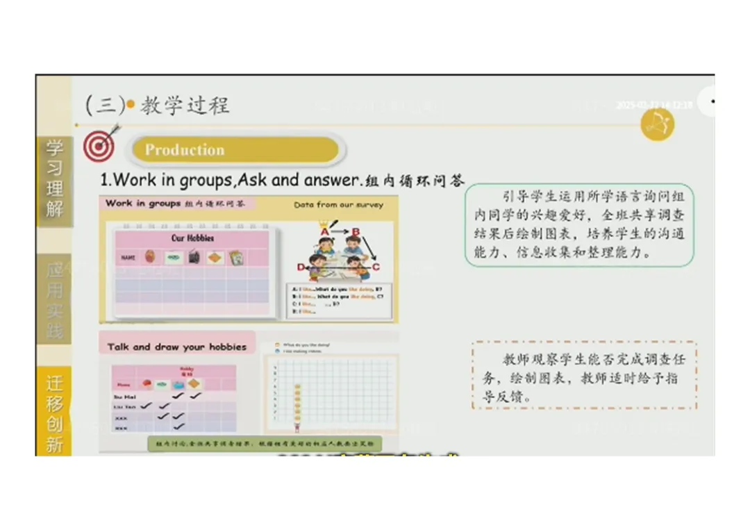3.Production:小组合作完成班级爱好调查→思考 “爱好的重要性”,培养批判性思维;