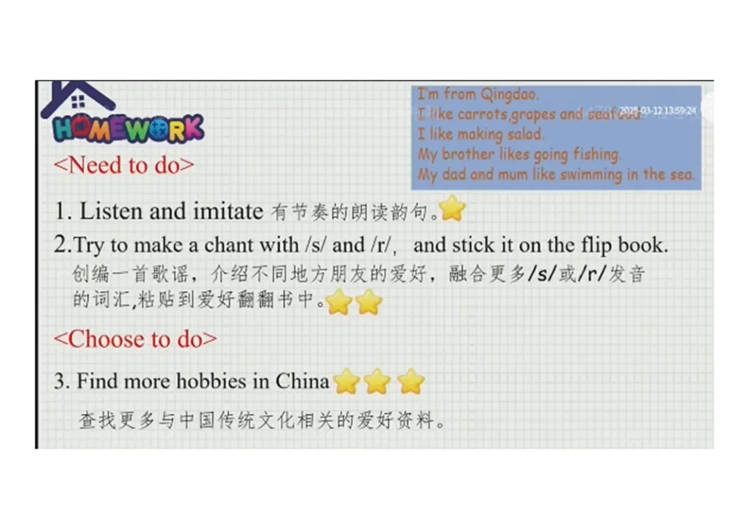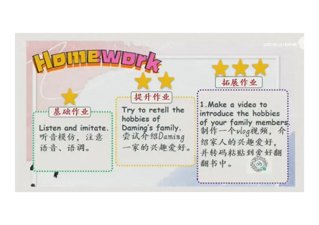 ○拓展:制作 vlog 介绍家人爱好,粘贴至爱好翻翻书。