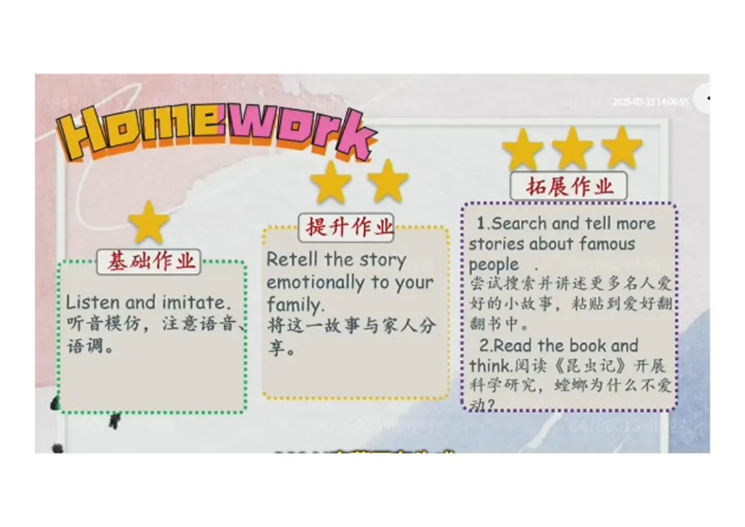 ○拓展:搜集名人爱好故事、阅读《昆虫记》。