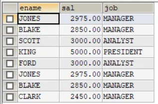 SELECT ename,sal,job FROM emp WHERE job='MANAGER'