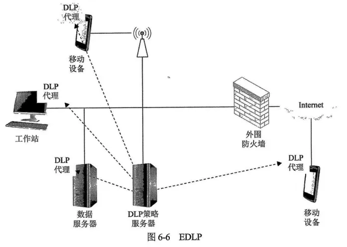 终端数据防泄露(Endpoint DLP,EDLP)将保护策略用于静止状态数据和处理状态数据。EDLP通过部署在每个受保护终端节点上的软件实现。该软件通常称为数据防泄露代理(DLPAgent),DLP代理(DLPAgent)与数据防泄露策略服务器通信以更新策略并报告事件。EDLP实现对特定目标的保护,这通常是NDLP无法实现的。因为在创建数据时,EDLP就可及时发现风险。即使是静止状态数据,EDLP也会在设备上加密数据,在需要使用数据时解密数据,从而实现EDLP检查和持续监测。EDLP的主要缺点是过于复杂。与NDLP相比,EDLP方案需要在组织中配置更多接入点,每个接入点都可能具有唯一的配置、执行方式或身份验证方式。最后,由于纯EDLP方案没有保护移动状态数据的策略,因此攻击方可规避这些策略(如通过恶意软件禁用代理来规避)并使组织无法察觉数据泄露事件。4.混合数据防泄露