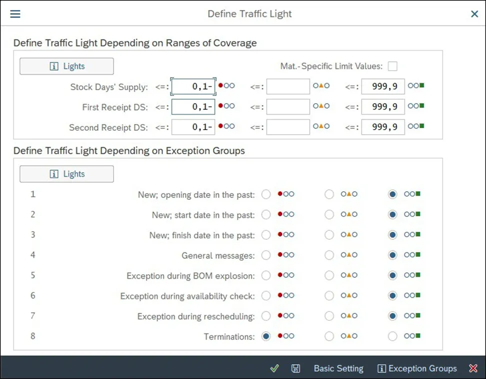 通过事务码MD07或报告RMMD07NEW运行库存/需求列表的集中读取后,将进入包含材料列表的相同结果屏幕。如果在选择屏幕中选中了在后台设置列表标志,将看到红绿灯、库存天数供应以及有关触发的异常消息数量的信息。下图显示了材料清单的示例。“库存可供应天数”、“第一个收货天数供应量”和“第二个收货天数供应量”列非常重要:它们用于定义交通信号灯和对物料需求计划元素进行排序。这些字段也称为覆盖范围数据。“库存可供应天数”值表示现有库存可以满足实际需求的天数。例如,库存可供应天数的供应量为 5意味着现有库存将满足五天的需求,或者不考虑现有补货要素,第一次短缺将在五天内出现。如果库存可供应天数的供应量为999.9,那么就不会短缺,现有库存可以满足所有需求。负库存可供应天数供应意味着过去存在短缺;如果该值为-999.9,则现有库存将永远不足以满足需求。“第一个收货天数供应量”和“第二个收货天数供应量”值也表示库存的持续天数,但它们也可以包括定制中预定义的收货元素。使用的逻辑与库存天数供应所使用的逻辑相同,但它将包括一些收货元素。用于选择哪些收货元素可以包含在第一个收货天的供应和第二个收货天的供应计算中的定制交易是事务码OMIL,如下图所示。在这里,对于每种类型的收货元素,可以选择是将其仅包含在第一个收货天数的供应中,还是仅包含在第二个收货天数的供应计算中,是否同时考虑它,或者是否根本不考虑它。还可以定义当实际库存低于零或达到安全库存时,系统是否将识别短缺。下图中所示的第 1列至第8 列表示MRP中可用的不同例外组。这些列下显示的数字不是异常消息,而是每个组中针对特定物料触发的异常总数。如果选择定义交通灯按钮,可以看到一个弹出窗口,显示如何确定交通灯颜色。如下图所示,交通信号灯将取决于“库存可供应天数”、“第一个收货天数供应量”、“第二个收货天数供应量”和“异常组”字段。可以定义天数供应的阈值,例如,确定应针对库存天数供应的最小值显示黄色红绿灯,或者在触发重新计划异常消息时显示黄色红绿灯。这些更改可以为每个用户单独保存。评估模板可以在后台配置事务码OM0O中创建;它允许根据覆盖范围字段设置交通信号灯定义的默认值。下图显示了库存/需求列表中的评估参数文件后台配置。参数文件将分配给工厂或物料需求计划组。在此弹出窗口中选择“材料特定极限值”标志后,这些值将用于库存/需求列表的集中读取。可以使用BAdI MD_SET_TRAFFIC_LIGHTS_DS来定义特定于物料的值,这些值的优先级将高于评估模板中定义的值。当BAdI 更改这些值时,Modified by BAdI指示器将显示在弹出窗口中。通过双击特定行,将移动到库存/需求列表的单独读取的权限,在那里将能够解决任何问题并调整每种材料的计划结果。在用户访问物料的单个库存/需求列表后,将自动标记“已访问”列,它对于通知计划人员哪些材料已经处理很有用。你若喜欢,点个❤️谢先👇