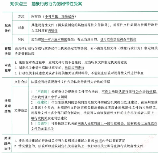 1.附带性审查:当事人在对具体行政行为提起诉讼时,一并请求审查抽象行政行为
