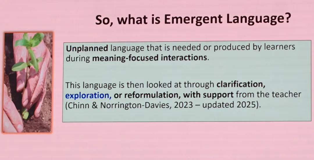 CocoPolaris从第一视角与大家分享我参会的学习笔记📖和一些小小的感悟。希望大家可以和CocoPolaris一起学习,共同进步,在成为优秀教师的道路上一起同行。 Emergent language: how we see it and what it can beSpeaker: Danny Norrington-Davies and Richard ChinnDanny Norrington-Davies是英国资深英语教学专家、教师培训师及国际会议演讲者,现任职于International House London,长期从事教师培训与课堂教学发展工作。他拥有超过 25年英语教学经验及15年教师培训经验。著有 《Teaching Grammar: From Rules to Reasons》,该书曾成为教师发展领域畅销书,并入围 British Council ELTon 教学资源创新奖。他也是 《Working with Emergent Language》 一书合著者,长期关注如何帮助教师在课堂中即时回应学生真实语言需求。