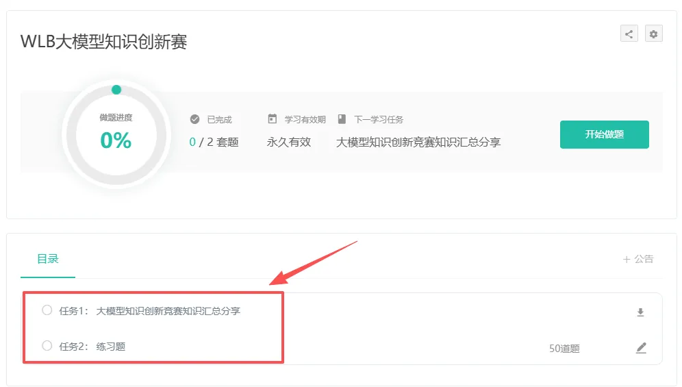 ✅️考察大模型相关知识,考试设置50道客观题,为方便参赛选手了解考试形式以及题型,提供专属题库练习,不限时不限次数,正式考试抽取题库部分原题;