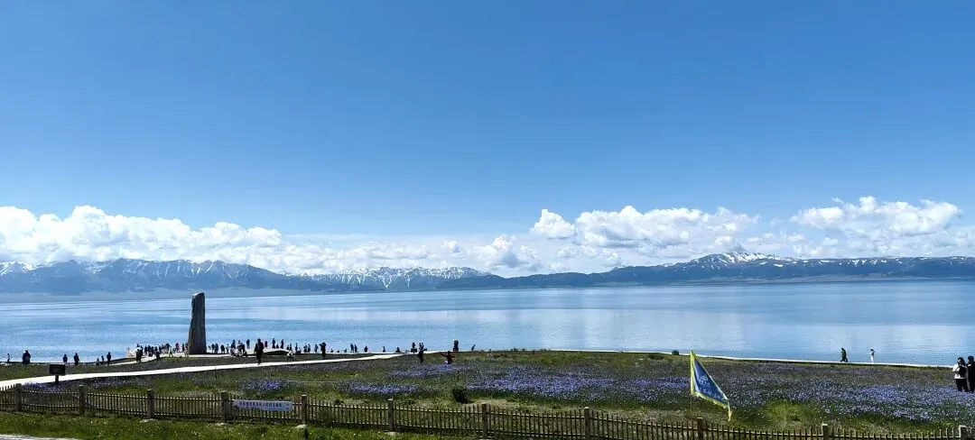 在拍摄大场景时,地平线的位置至关重要。这一张,我们将地平线放在画面下方约三分之一处,让占据画面三分之二的天空和湖水,尽情展现赛里木湖的澄澈与辽阔,给人一种心旷神怡的感觉。反之,如果想突出前景的花海和石碑,就可以将地平线抬高,放在画面上方三分之一处。