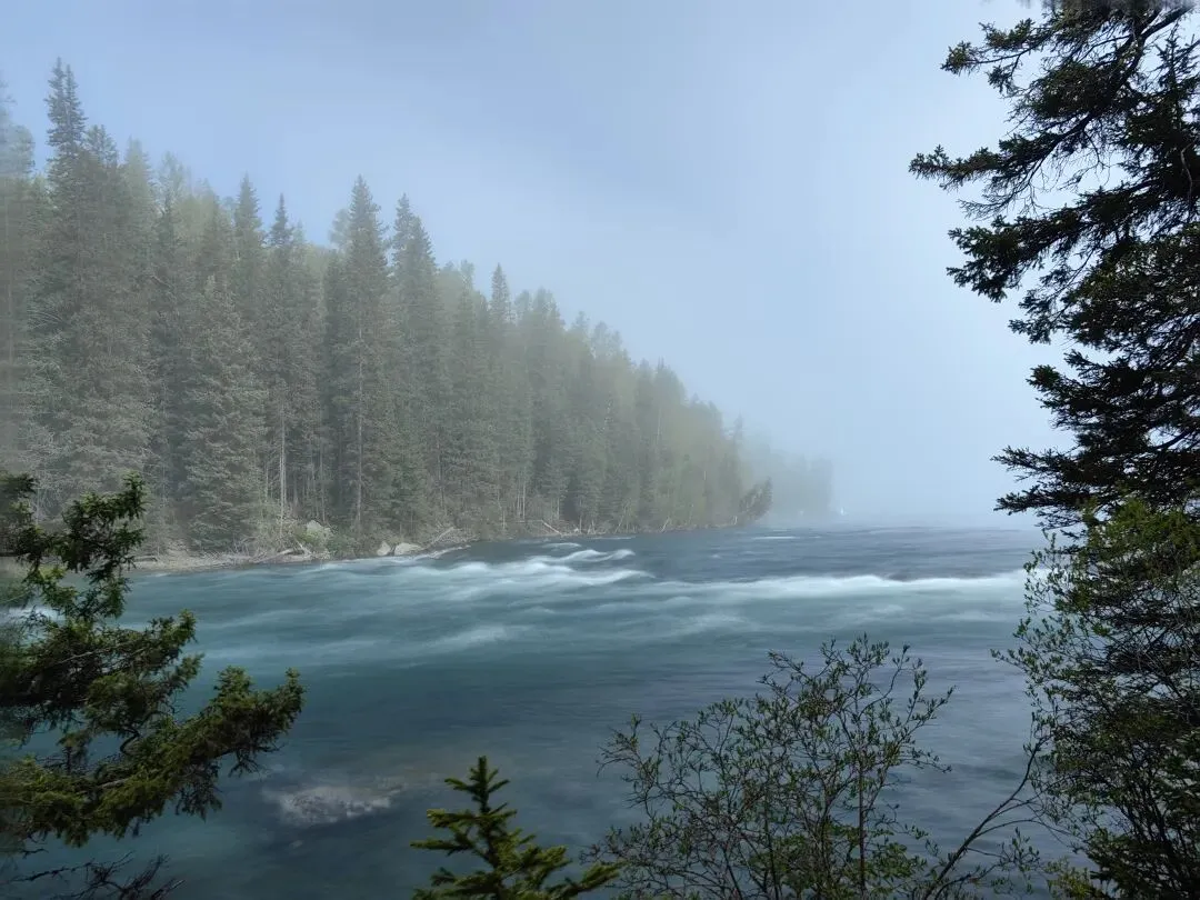 比如:河流从前景流向远方,蜿蜒的河道本身就是一条天然的引导线,将我们的目光从近处的河水,一直带到雾气弥漫的森林深处,仿佛要去探索那片未知的秘境。