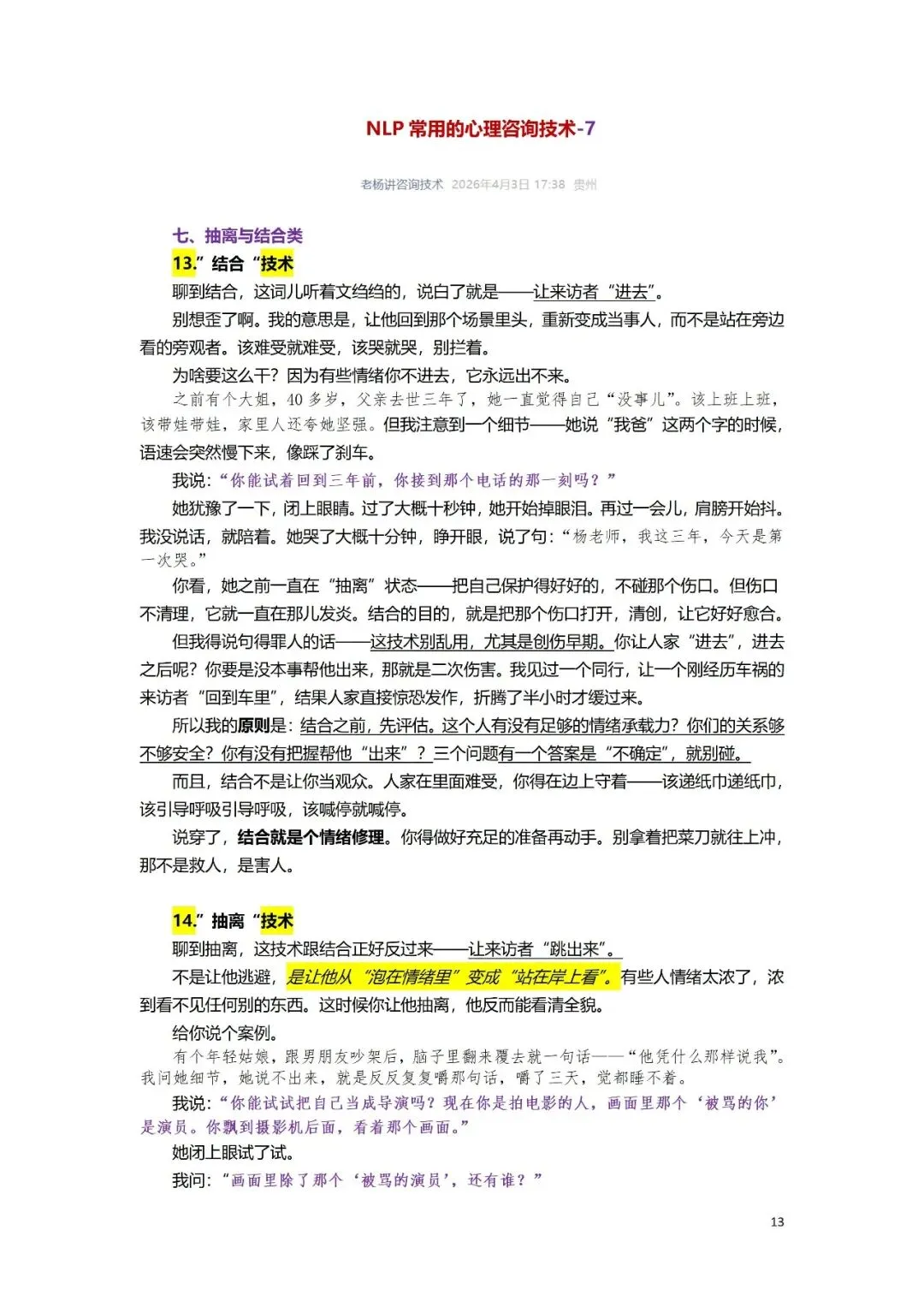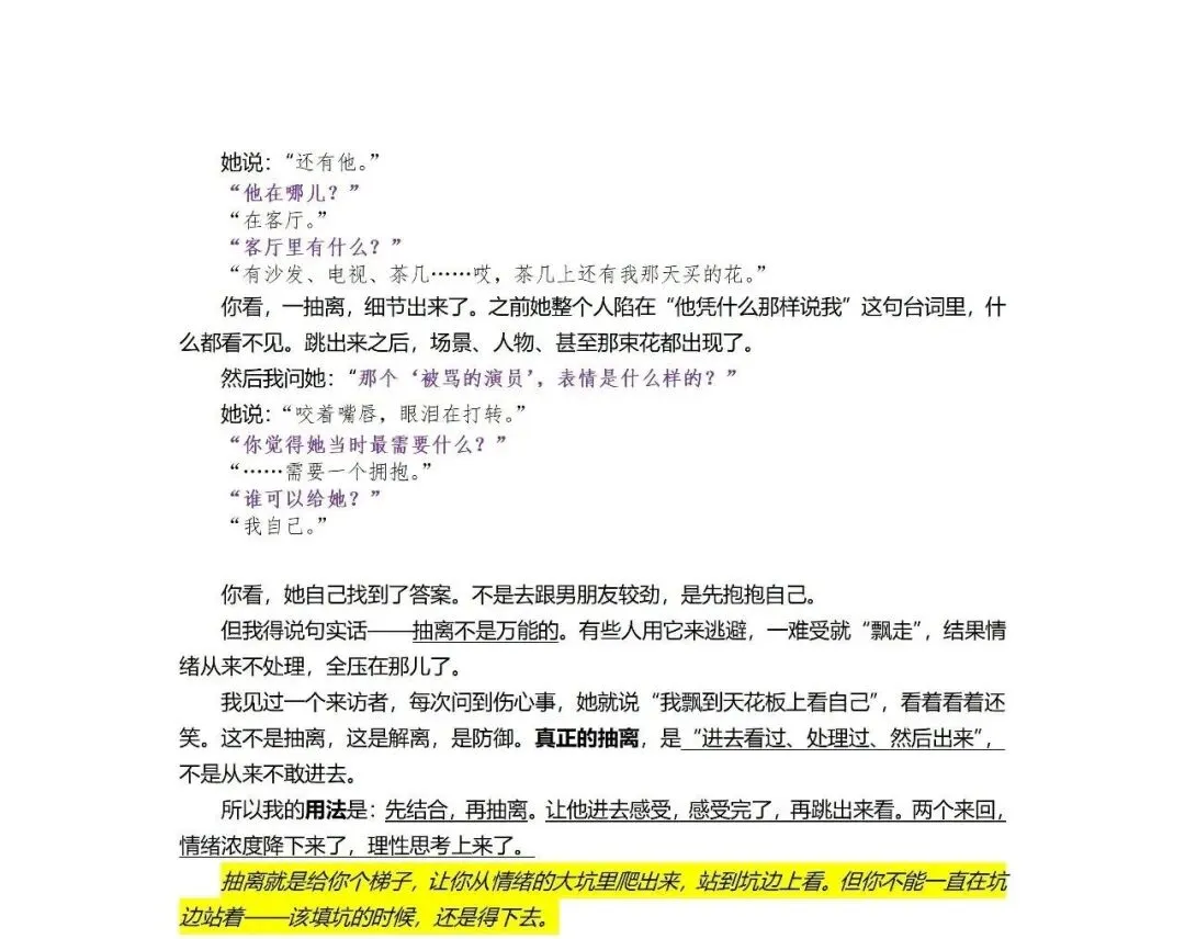 六、时间线疗法类:11.”过去资源提取“技术12.”模拟未来“技术七、抽离与结合类:13.”结合“技术14.”抽离“技术