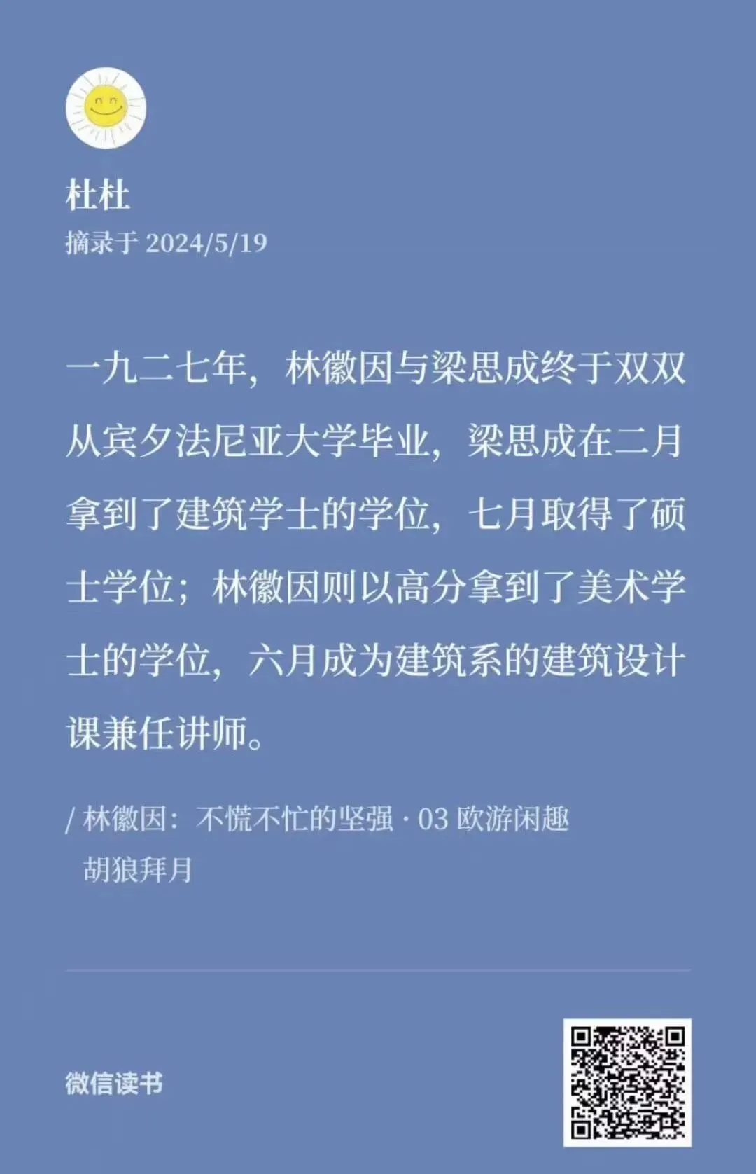 我是一个年近知天命、刚刚起步的古建小白,即便学识与成就云泥之别,我仍从林徽因身上收获了珍贵的力量。
