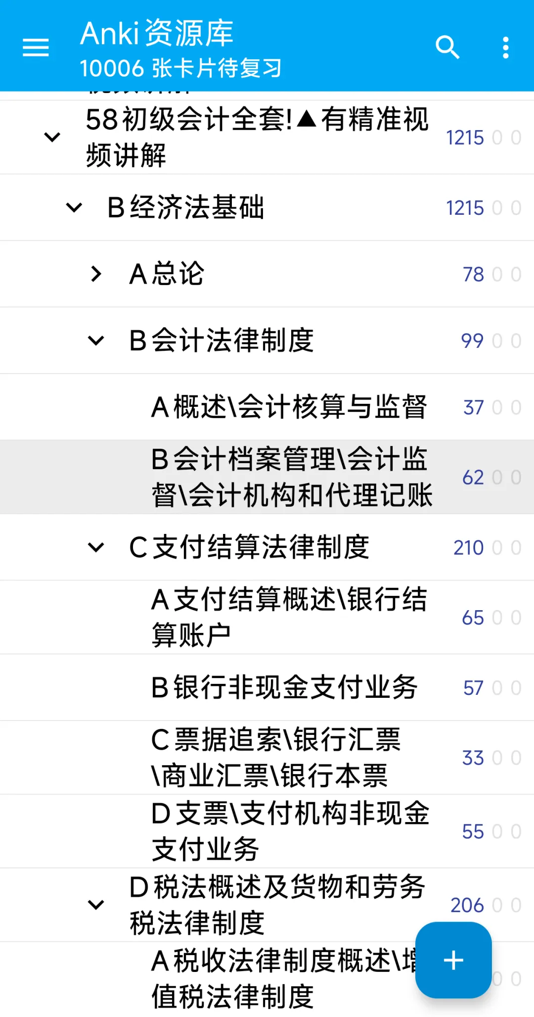杨弦的第二次失败,发生在毕业季。忙于求职、聚会,她坦言“图书馆再也没有我的脚步”。工作后,整块学习时间更是奢侈。这是职场考生和学业繁忙学生的共同噩梦。记忆鸽的设计,天生为碎片化时间而生。它将你的手机或平板直接改造成“抗遗忘学习机”。无需携带厚重教材,在通勤地铁上、午休排队时、甚至工作的间隙,掏出手机就能进入学习状态。更重要的是,它通过“思维导图大纲化”结构,解决了碎片化学习必然导致的“知识零散”问题。所有初级会计的知识点,被组织成一棵清晰的“知识树”:《初级会计实务》是主干,“资产”、“负债”等章节是主要枝干,具体如“存货的计价方法”便是枝干上的树叶。学习时,你每次只聚焦于一片“树叶”(当前知识点),其他内容自动隐藏,界面极致简洁。但只需点击红色的“雷达按钮”,就能瞬间展开整个枝干乃至整棵树的思维导图全貌,让你立刻看清当前知识点在全局中的位置,实现“碎片时间学习,体系框架不忘”。霍梦娜在图书馆“崩溃到失眠”的夜晚,如果她能利用睡前十分钟,用记忆鸽刷几个她标记为“困难”的增值税抵扣规则知识点,并随时展开查看知识关联,她的焦虑或许能大大缓解,效率也将倍增。03 体系溃散与焦虑循环:为何刷题越多越迷茫?
