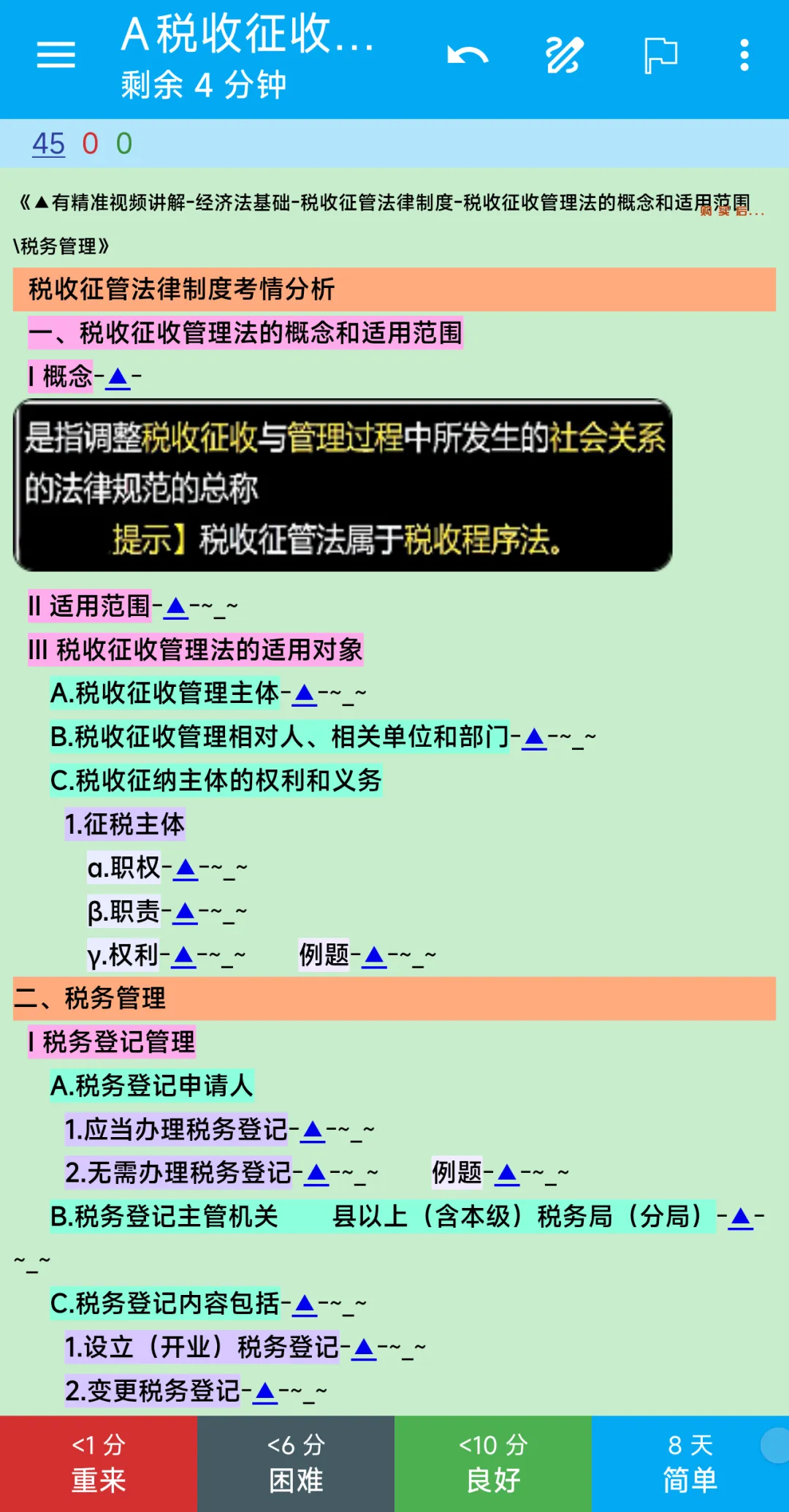 对于霍梦娜这样的零基础考生,最大的恐惧来自于面对庞杂知识体系的茫然无措。传统方法让她直接从厚教材入手,如同被抛入大海。记忆鸽提供的,是一张科学绘制的“航海图”。导入初级会计资源后,她首先看到的不是杂乱的字句,而是结构分明、色彩区分的知识大纲。她可以从最基础的“会计概述”开始,像探索一棵树一样,从树干到枝干,再到树叶,循序渐进。每当遇到“天书”般的难点,如“长期股权投资的成本法与权益法”,她不再需要去冗长的网课中费力寻找对应段落。只需点击该知识点旁的蓝色三角号(▲),精准的讲解视频或图文解析即刻呈现,实现“哪里不会点哪里”。她甚至可以将自己理解后编的“口诀”或“故事”记录在三角号的协作区,让笔记“生长”为自己的独家秘籍。这种“体系化导航 + 精准化补给”的设计,让零基础入门不再是一场痛苦的硬仗,而是一次目标明确、支援及时的探索。