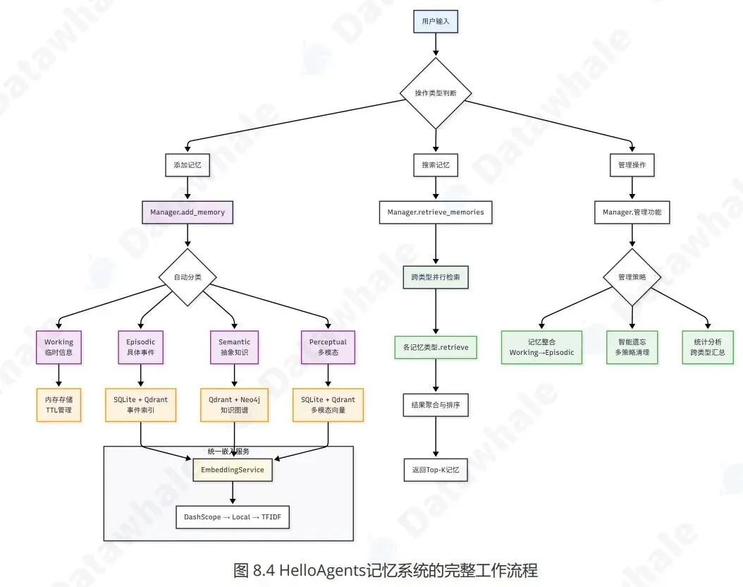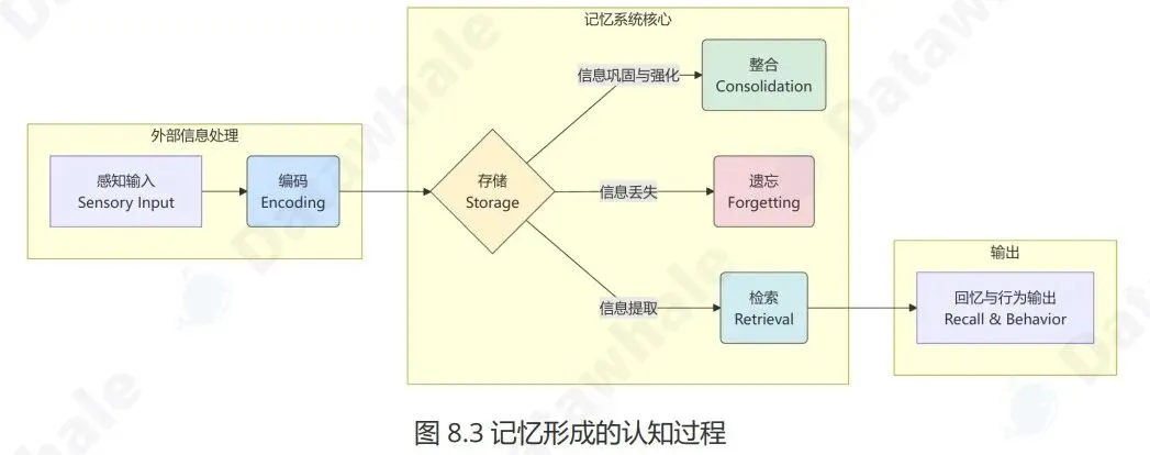 基于认知心理学的记忆分类,设计了记忆模块的流程比如记忆添加、遗忘、固化等。