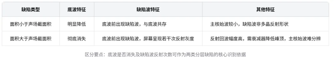 缺陷面积 | 波形特征 | 识别要点 |