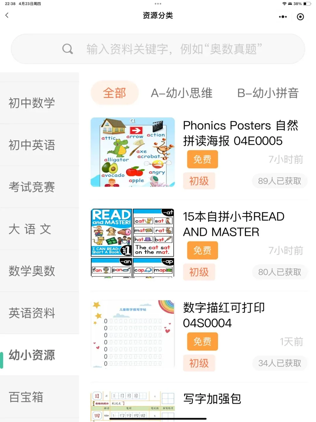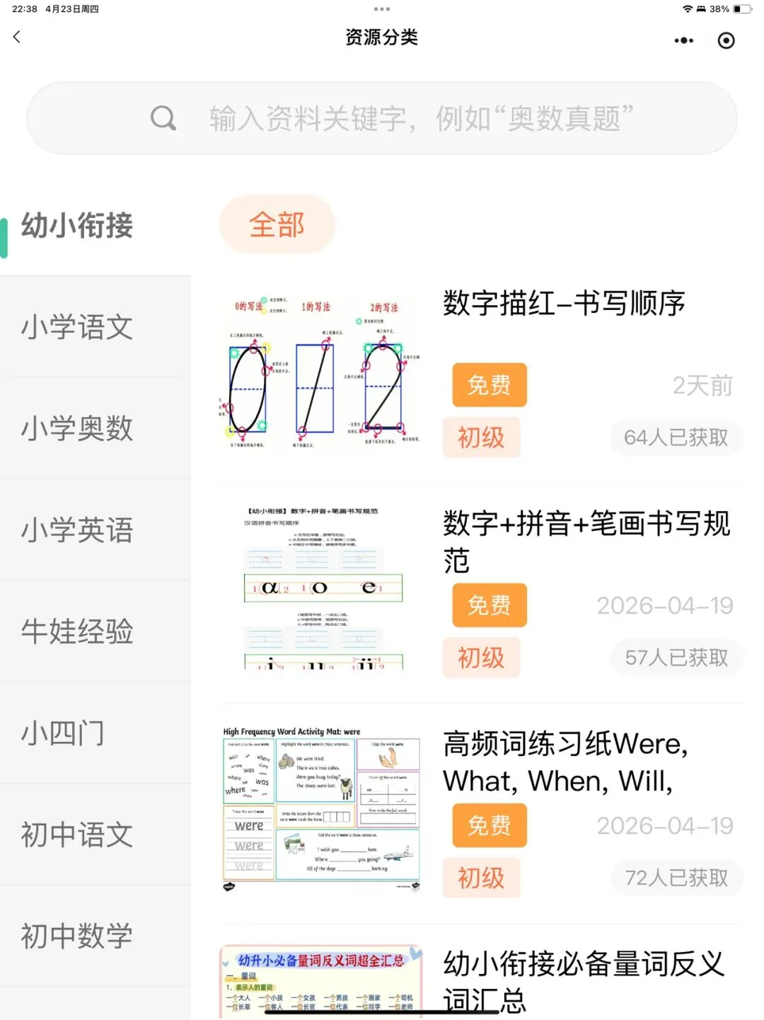 >幼小衔接/小学/初中全科语数英科物化生 学习资料免费领取小程序