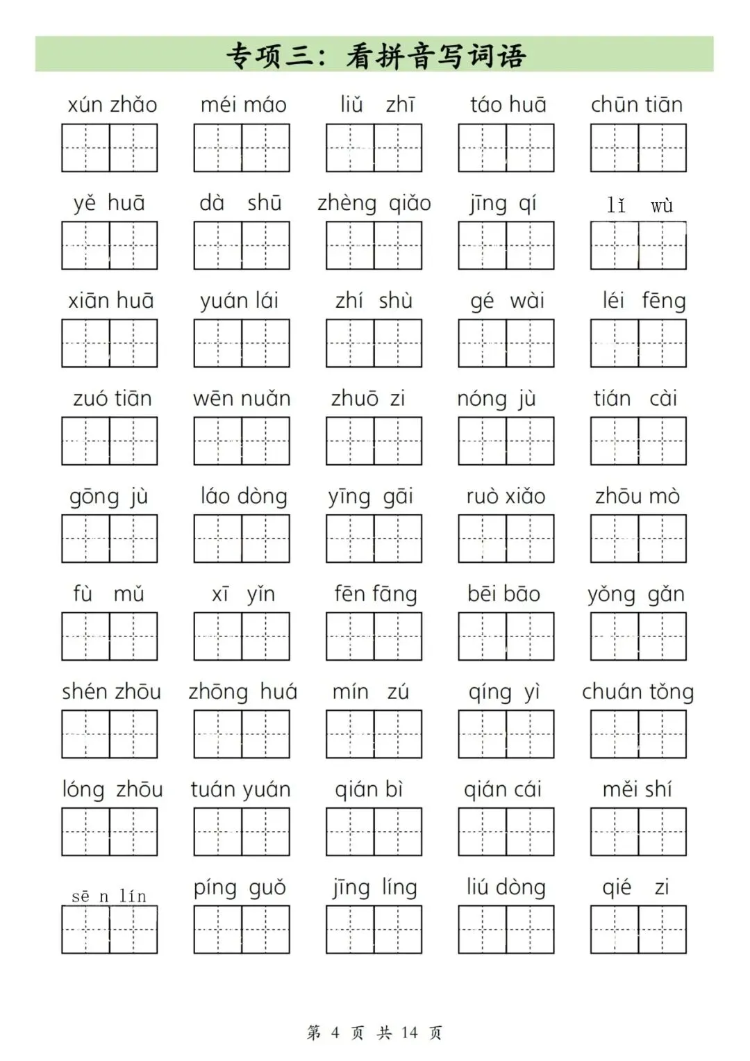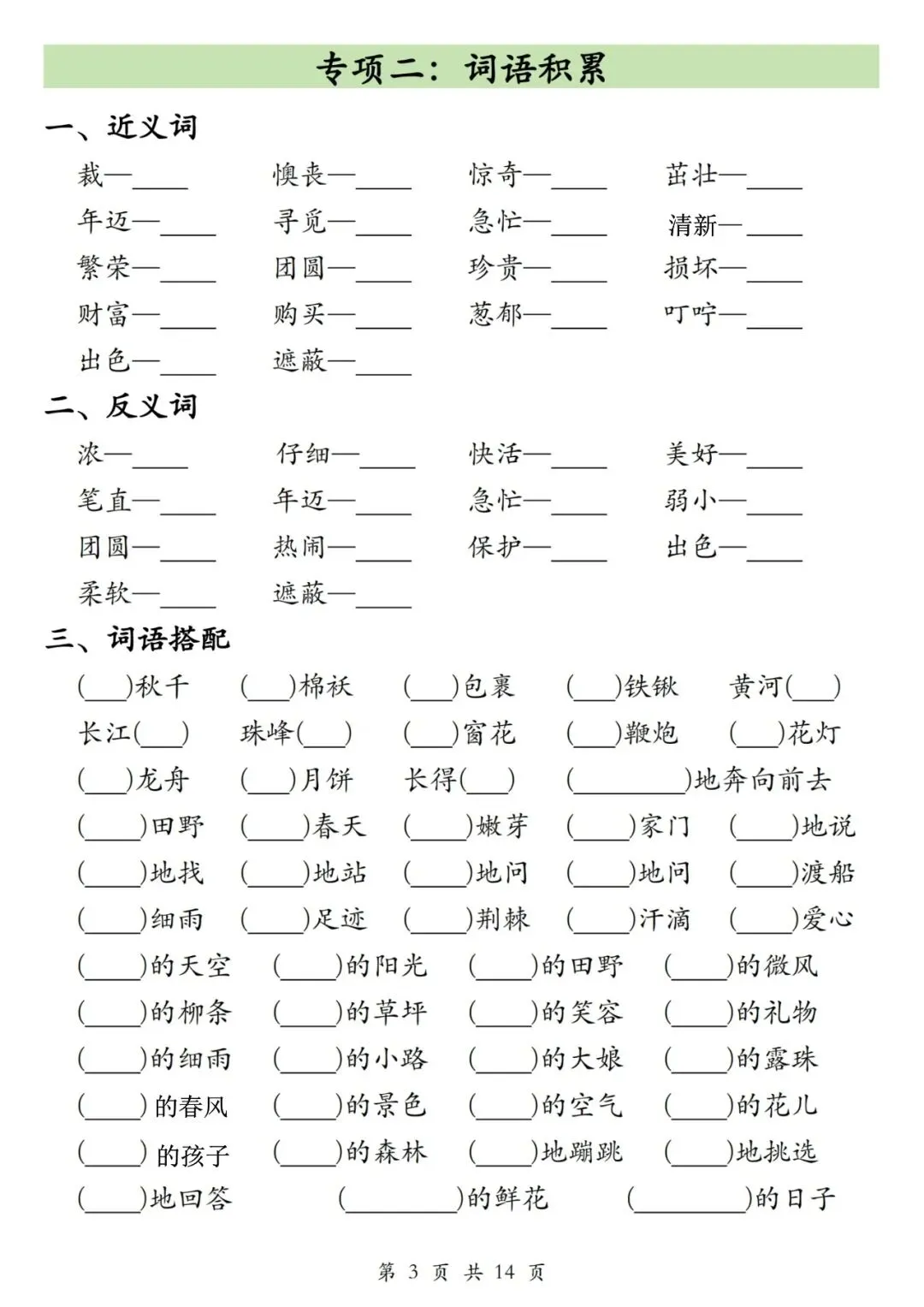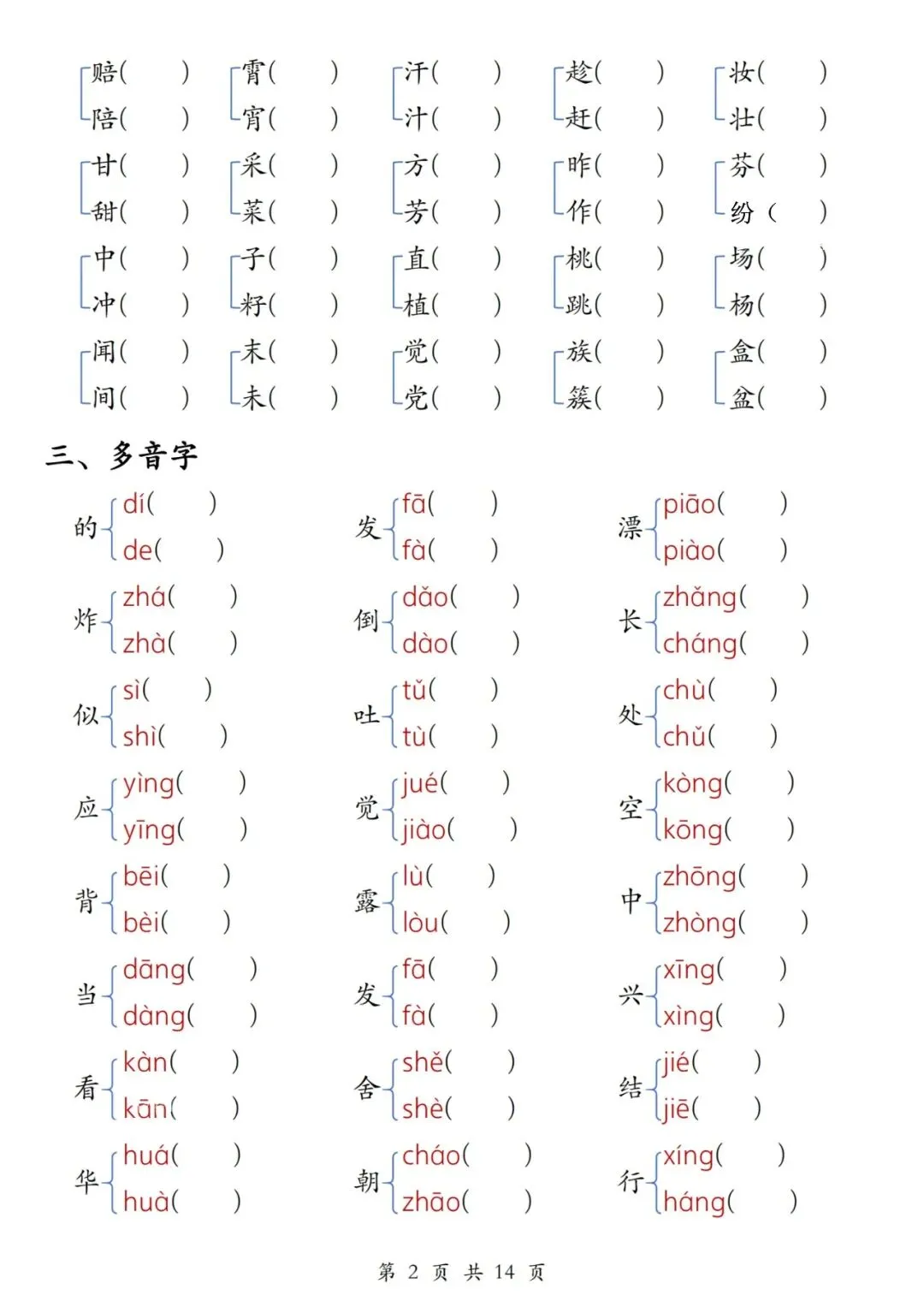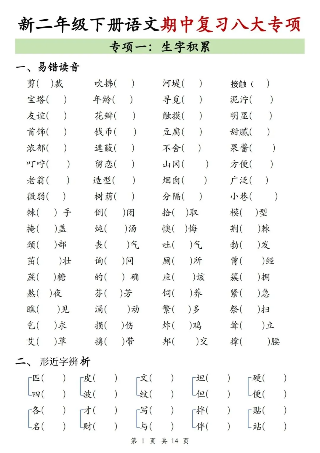 >【学习资料分享】二年级下册语文期中复习(专项1——3)