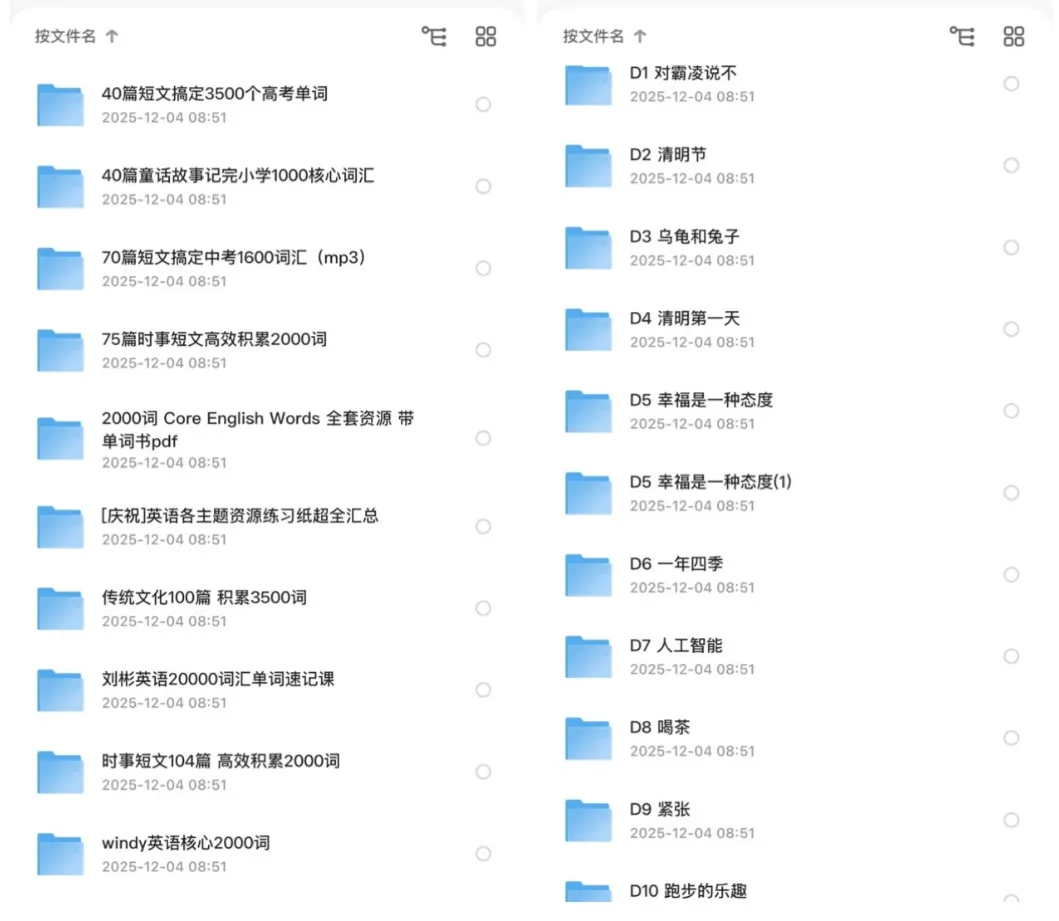 这套资料,覆盖了从小学到高中的全阶段词汇需求,不管你是刚接触英语的小学生,还是正在备战中考、高考的学生,或是想重新捡起英语的成年人,都能从中找到适合自己的内容。