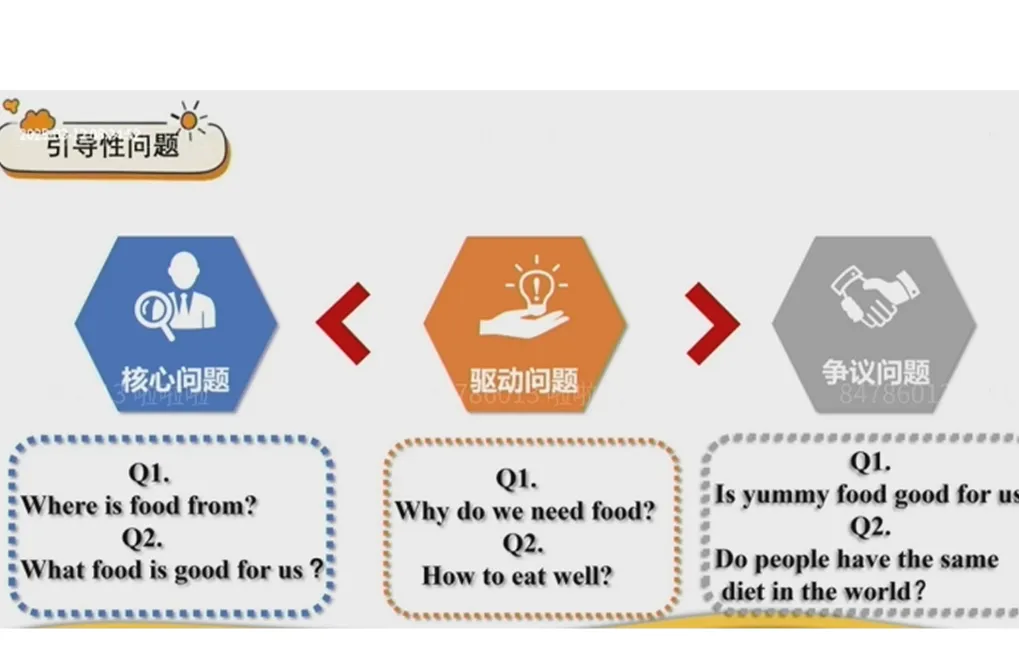 2.核心驱动问题:Why do we need food?(我们为什么需要食物?);How to eat well?(怎样吃得健康?)