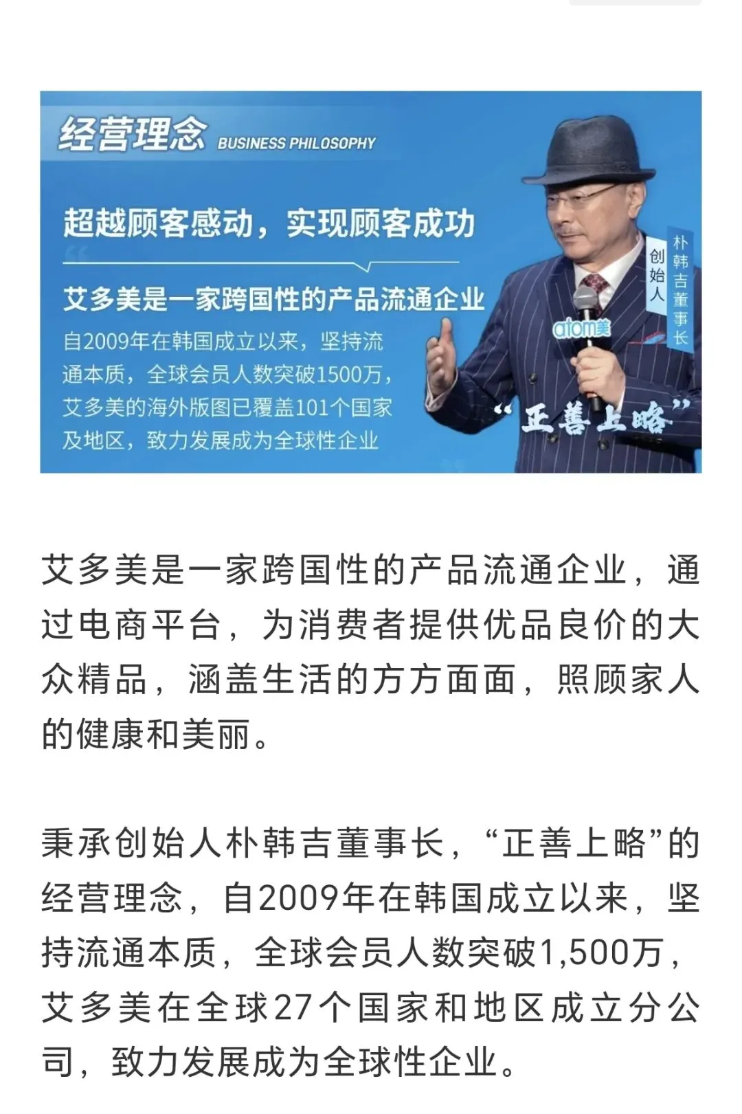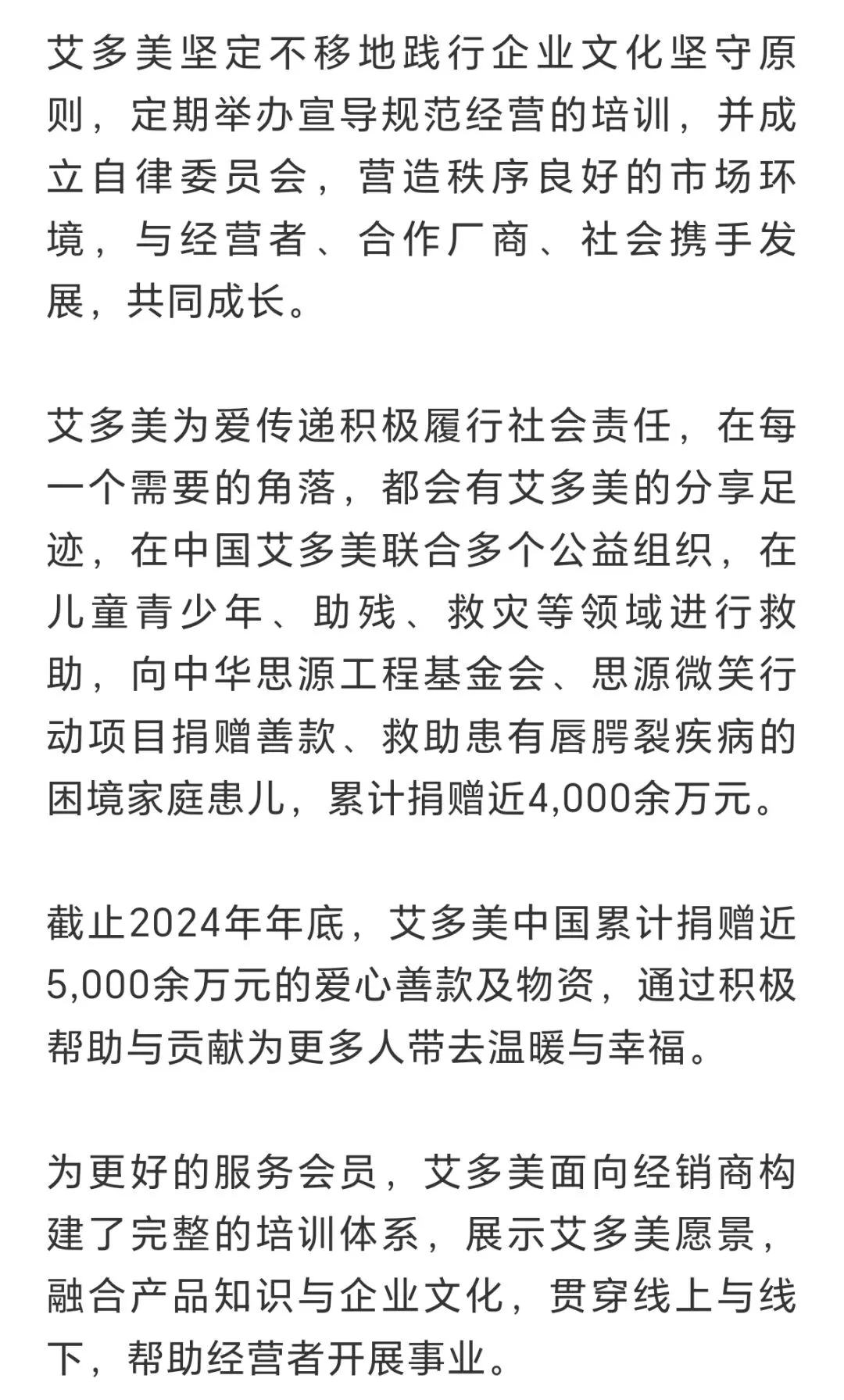 总结:优品良价,建立流通枢纽的企业,坚守原则,坚定“正善上略”的企业,打造超一流企业,我们是引以自豪的艾多美。