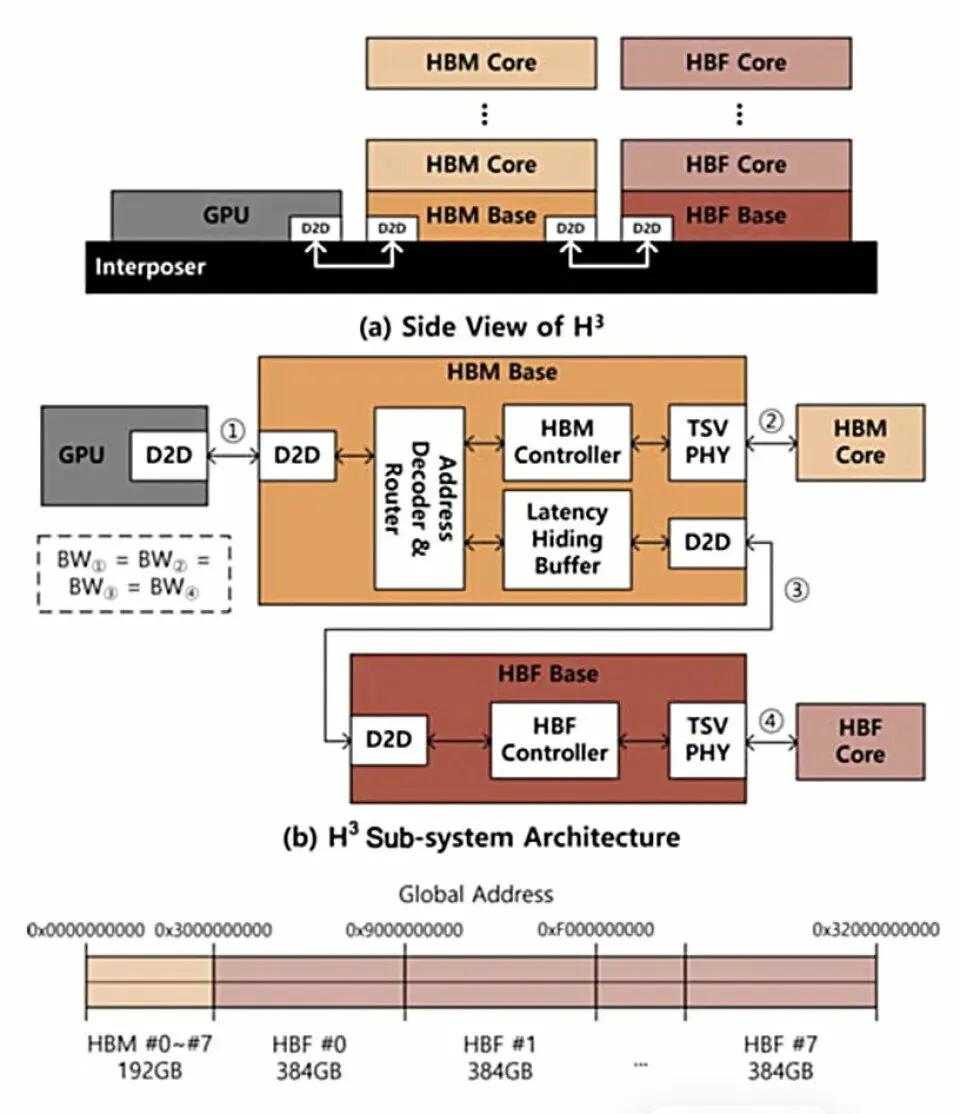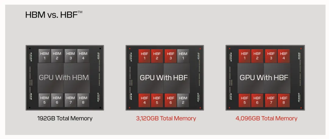 如下图: HBF和HBM都放在interposer上,和GPU/xPU直接互联。