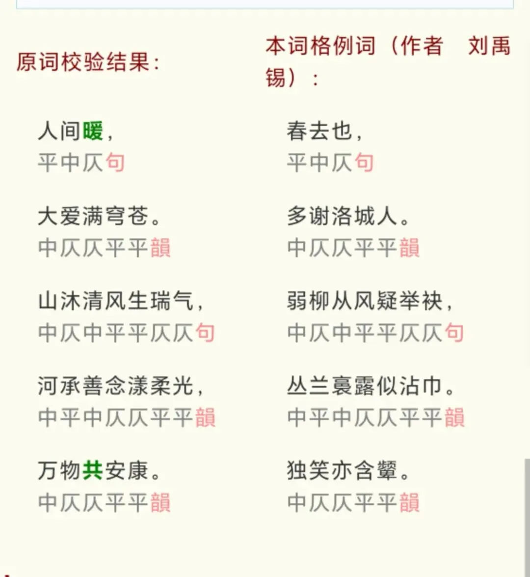 按照以下词谱,自拟题目忆江南•题目(韵部)平中仄,中仄仄平平(韵)。【中仄中平平仄仄,中平中仄仄平平(韵)】,中仄仄平平(韵)。浣溪沙•题目(韵部)中仄中平中仄平(韵),中平中仄仄平平(韵),中平中仄仄平平(韵) 。 【中仄中平平仄仄,中平中仄仄平平(韵),】中平中仄仄平平(韵)卜算子•题目(韵部)中仄仄平平,中仄平平仄(韵)。中仄平平仄仄平,中仄平平仄(韵)。 中仄仄平平,中仄平平仄(韵)。中仄平平仄仄平,中仄平平仄(韵)。苏幕遮•题目(韵部)【仄平平,平仄仄(韵)。】中仄平平,中仄平平仄(韵)。中仄平平平仄仄(韵)。中仄平平,中仄平平仄(韵)。【仄平平,平仄仄(韵)。】中仄平平,中仄平平仄(韵)。中仄平平平仄仄(韵)。中仄平平,中仄平平仄(韵)学员:刘津芝学号:wy9-b203-461.忆江南·爱(词林正韵第二部)人间暖,大爱满穹苍。山沐清风生瑞气,河承善念漾柔光,万物共安康。