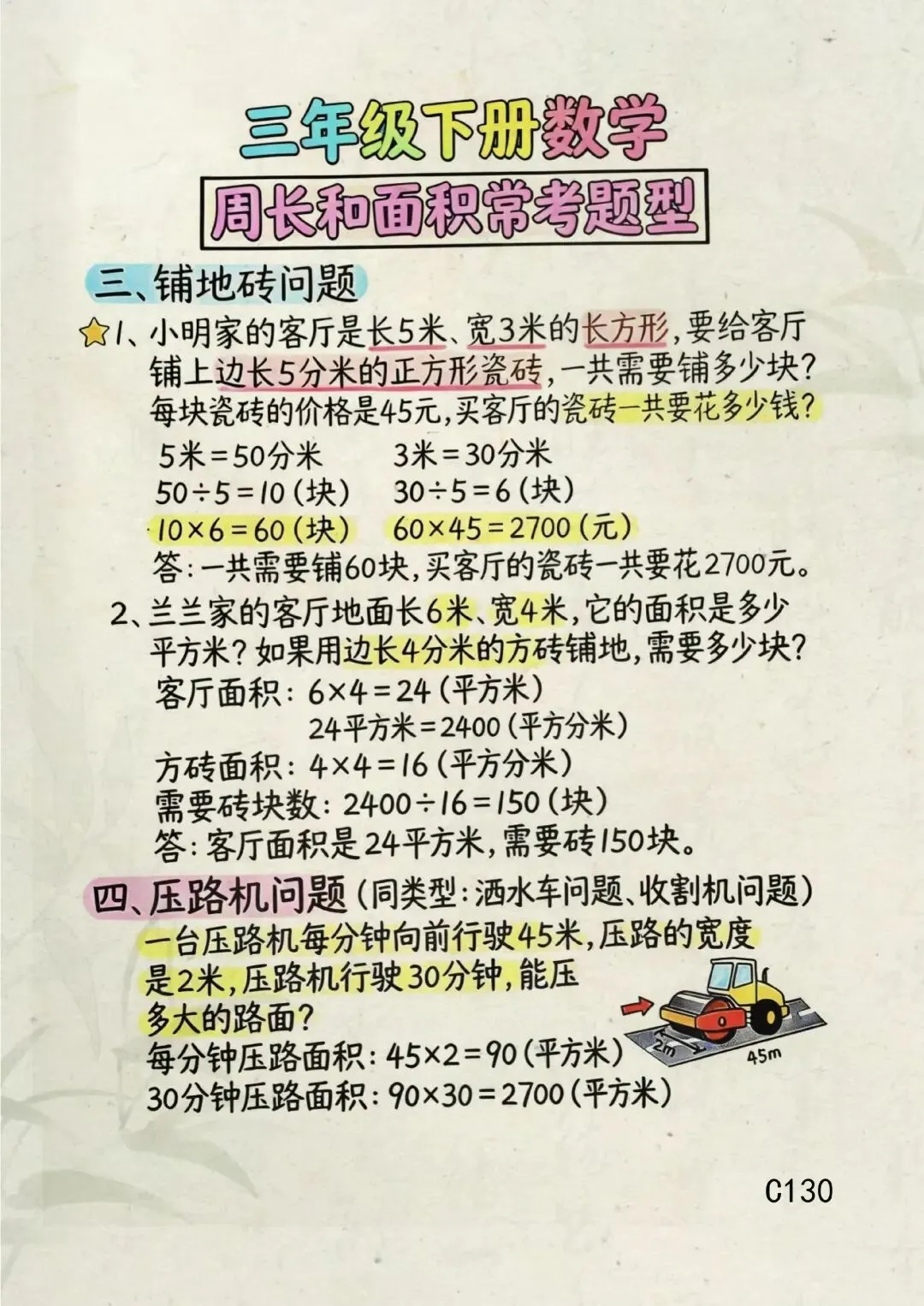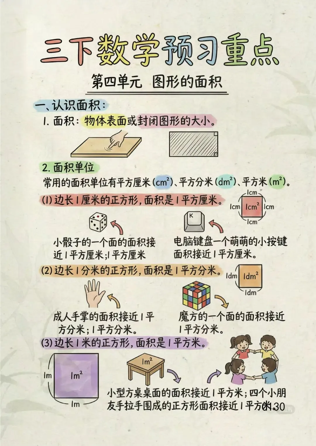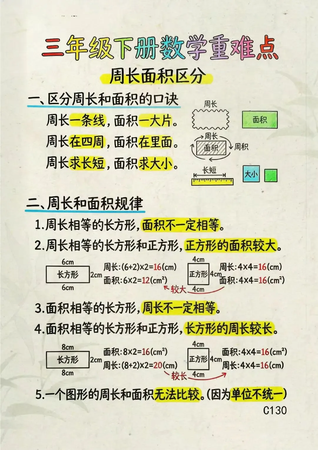 【资料分享】吃透这13页周长和面积考试就没有丢分的|三年级下数学