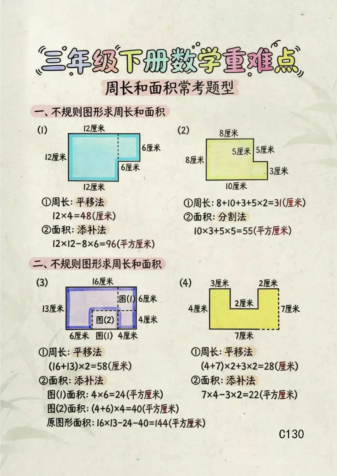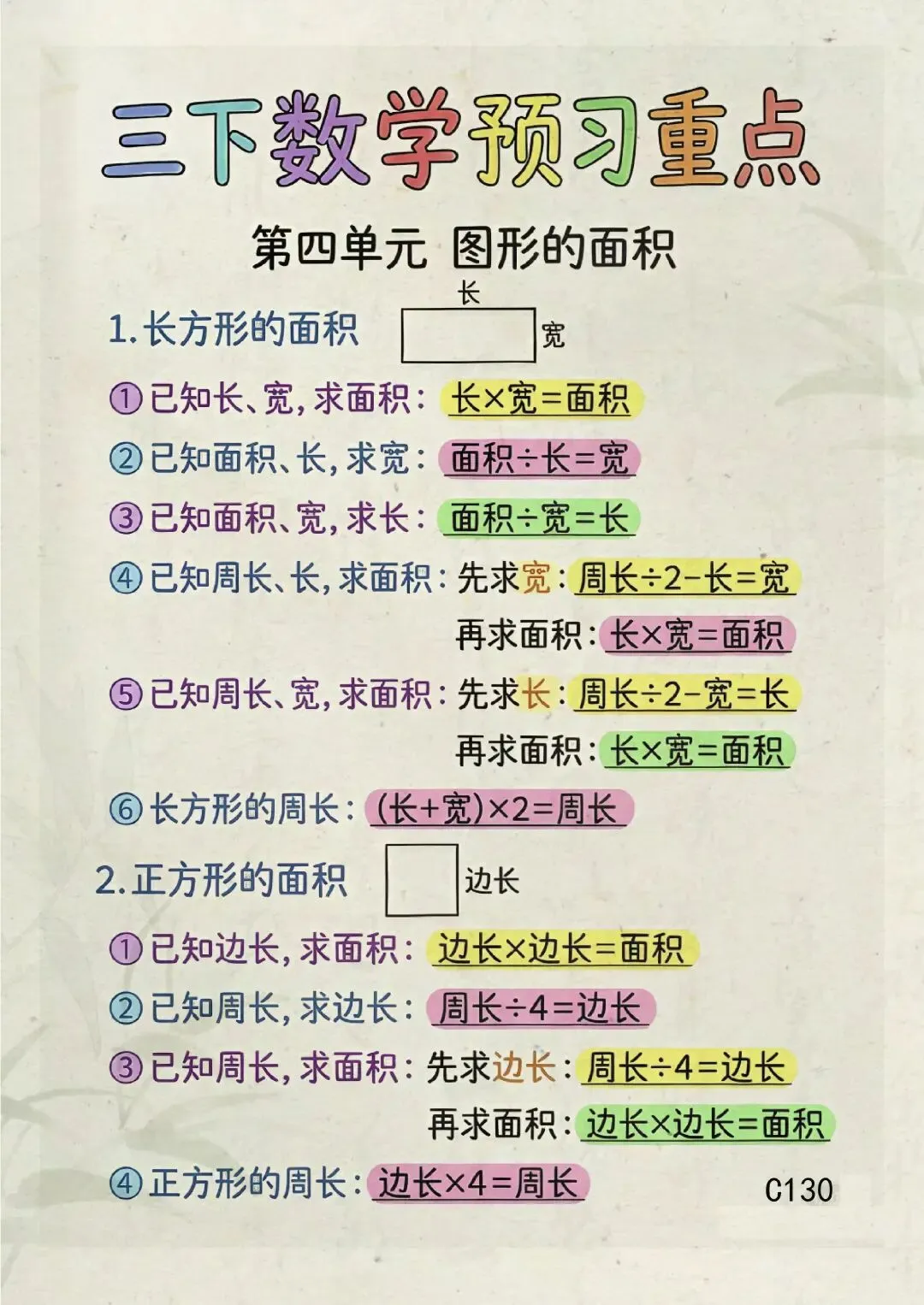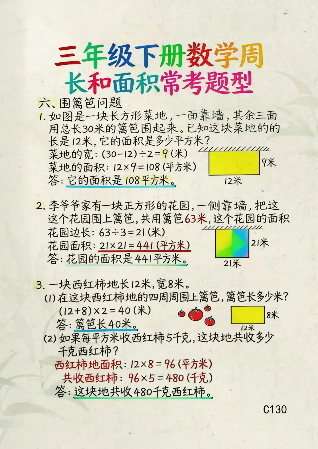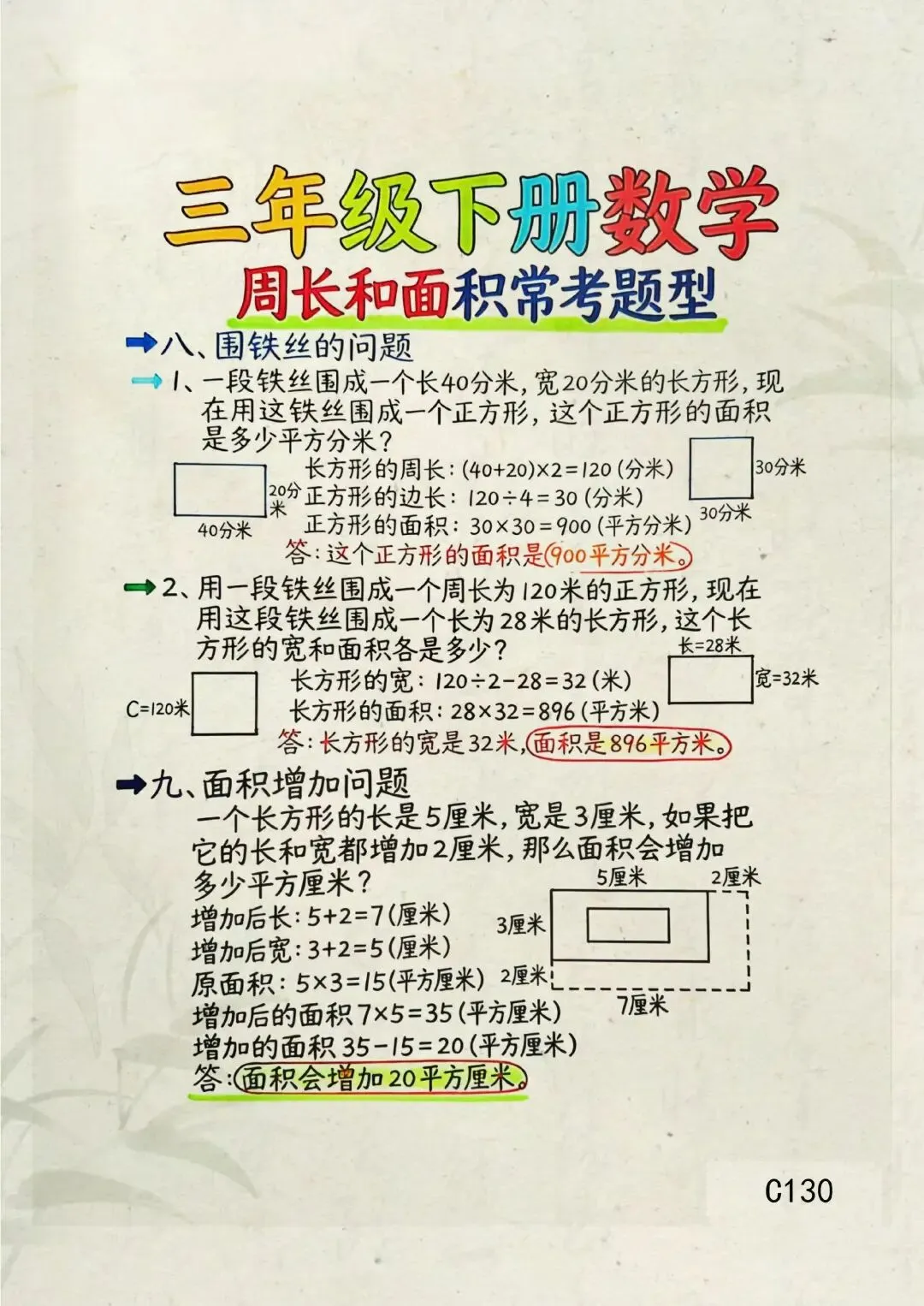 【资料分享】吃透这13页周长和面积考试就没有丢分的|三年级下数学