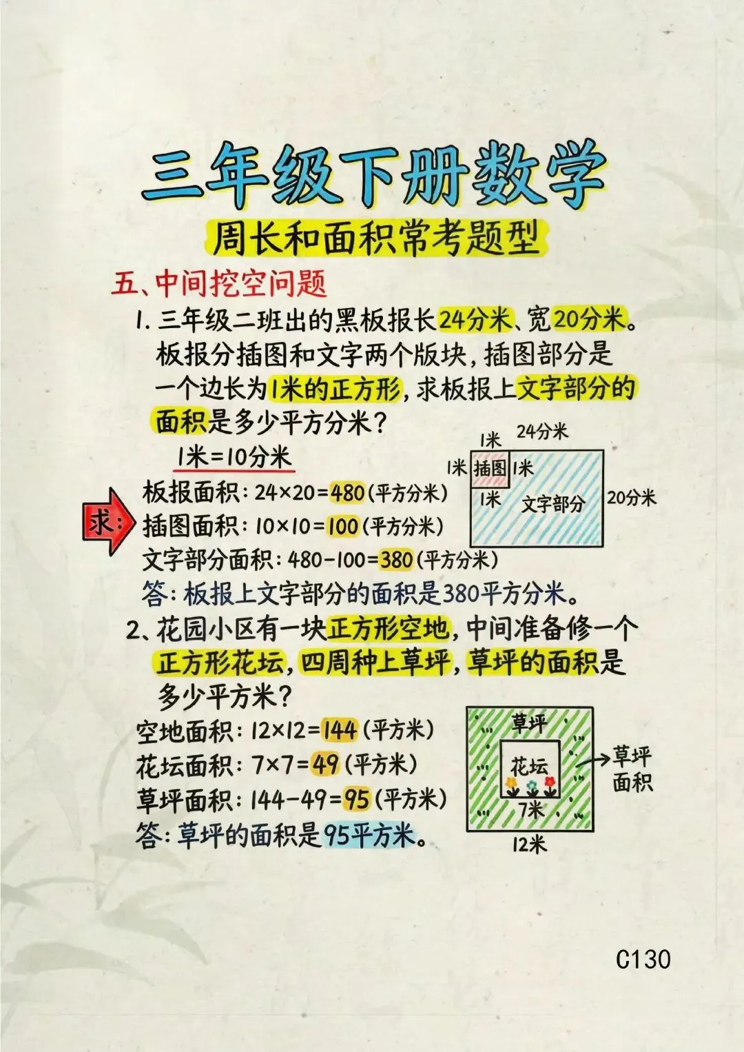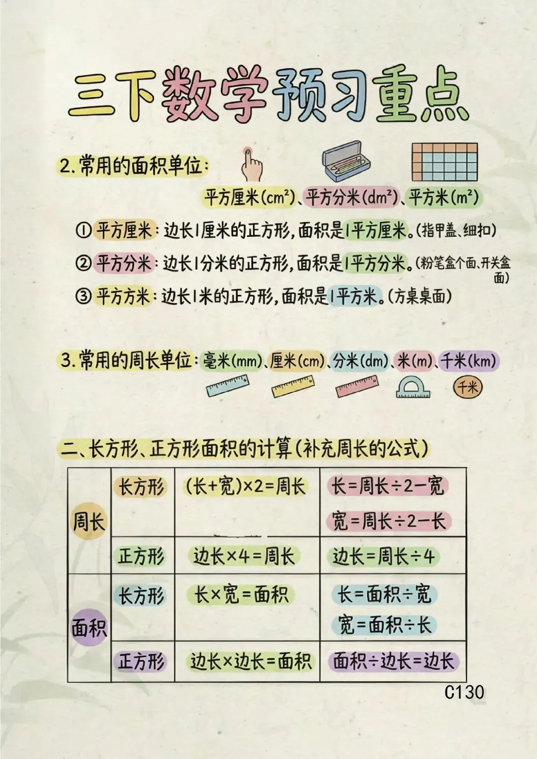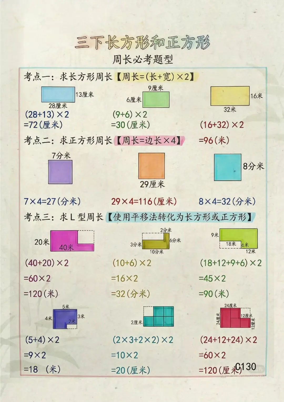 当前位置:首页>学习资料>【资料分享】吃透这13页周长和面积考试就没有丢分的|三年级下数学