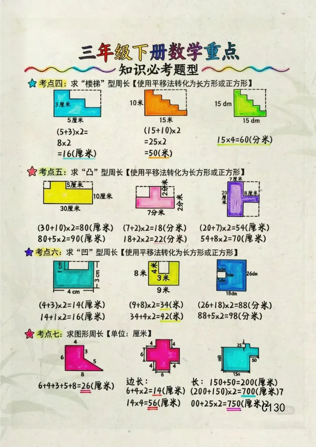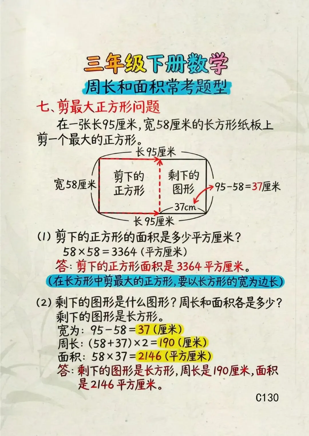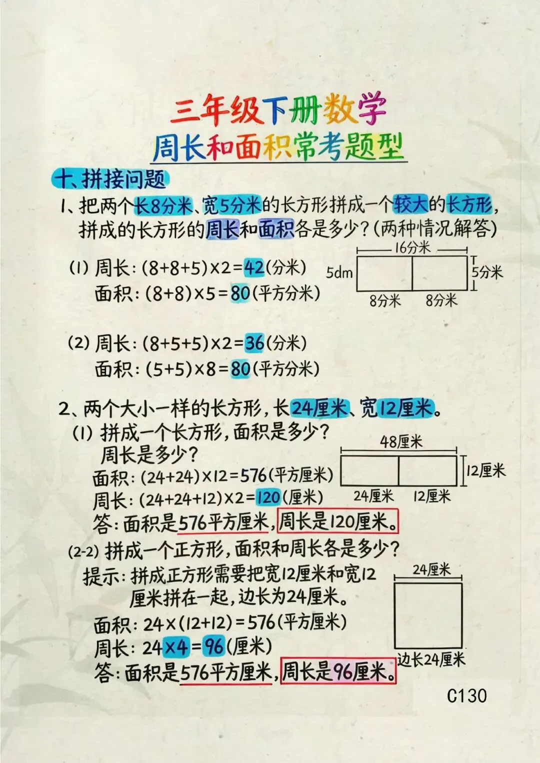 当前位置:首页>学习资料>【资料分享】吃透这13页周长和面积考试就没有丢分的|三年级下数学