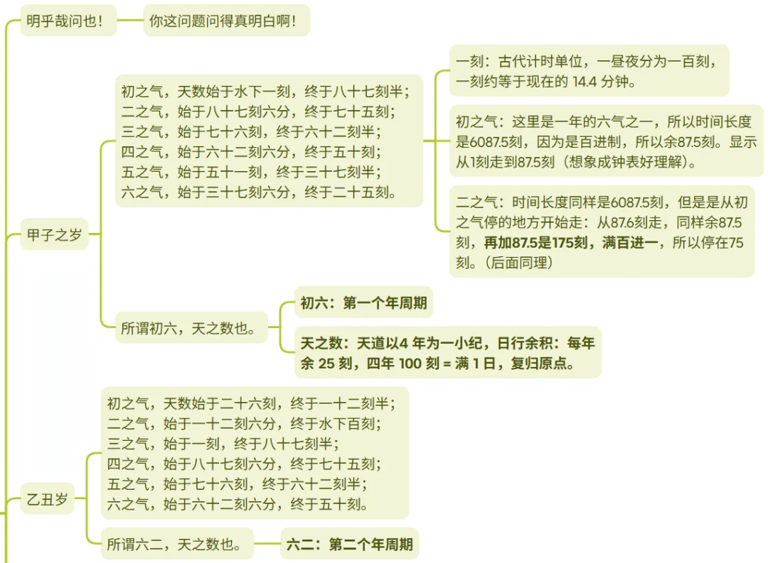 1、愿闻天道六六之节盛衰何也? (我想听关于天道“六六之节” (六气运行规律)的盛衰变化)