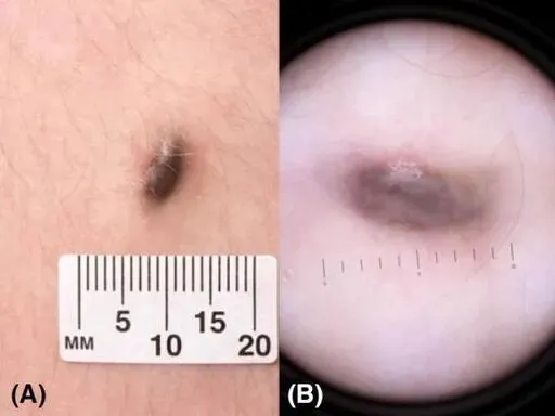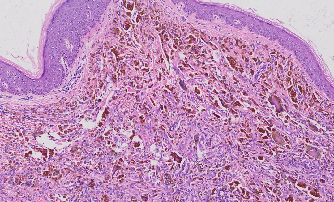 •表现:缓慢生长、无痛性结节 / 肿块,直径多 2–5 cm;表面可呈蓝红色,易误诊为血管瘤、囊肿或色素痣。