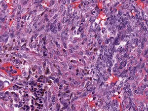 ②肿瘤附近的实体区域,尤其是细胞,常表现为良性纤维组织细胞瘤。