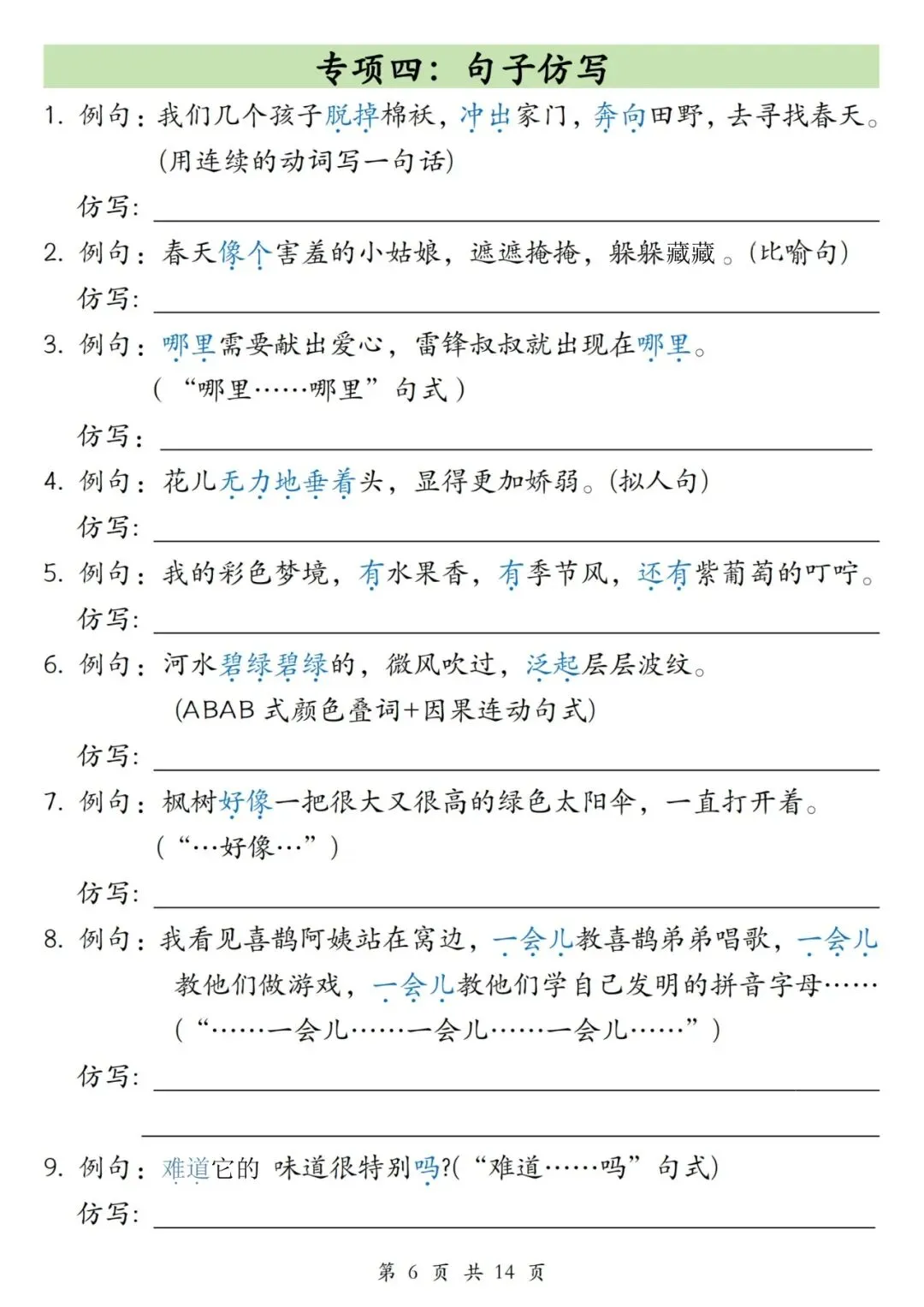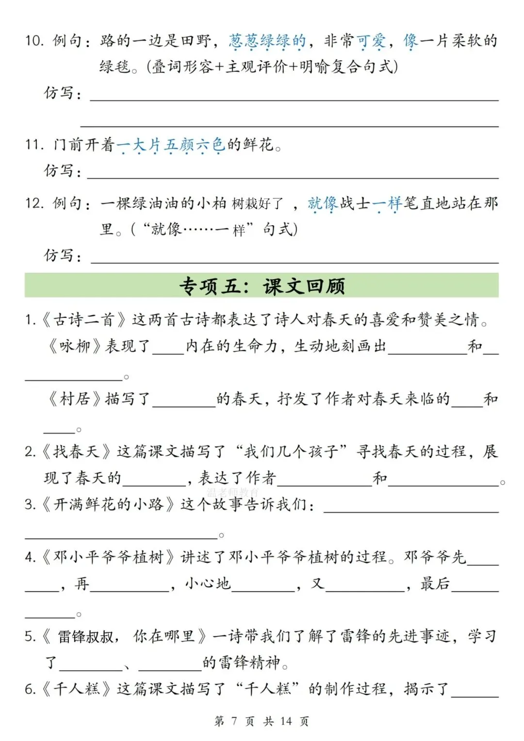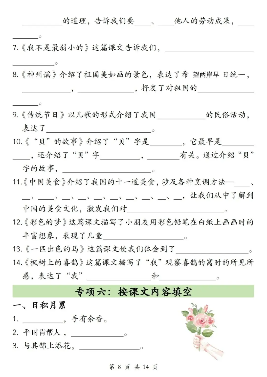 >【学习资料分享】二年级下册语文期中复习(专项4——8)