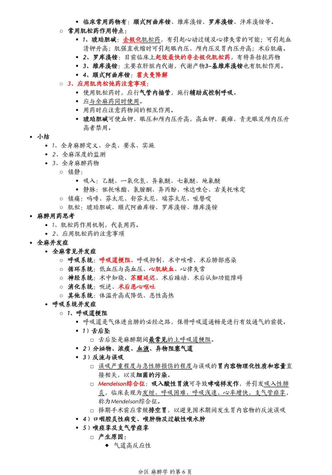 《麻醉学(2023春)》的课程笔记,我坐在新街口教室的第一排听课,用红字标出来了每一次老师提到的“重点掌握”内容