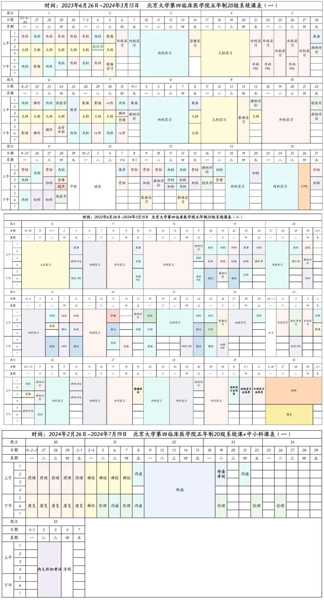 “内外妇儿”时期的课表(2023秋—2024春),用我最喜欢的字体和色彩进行了美化