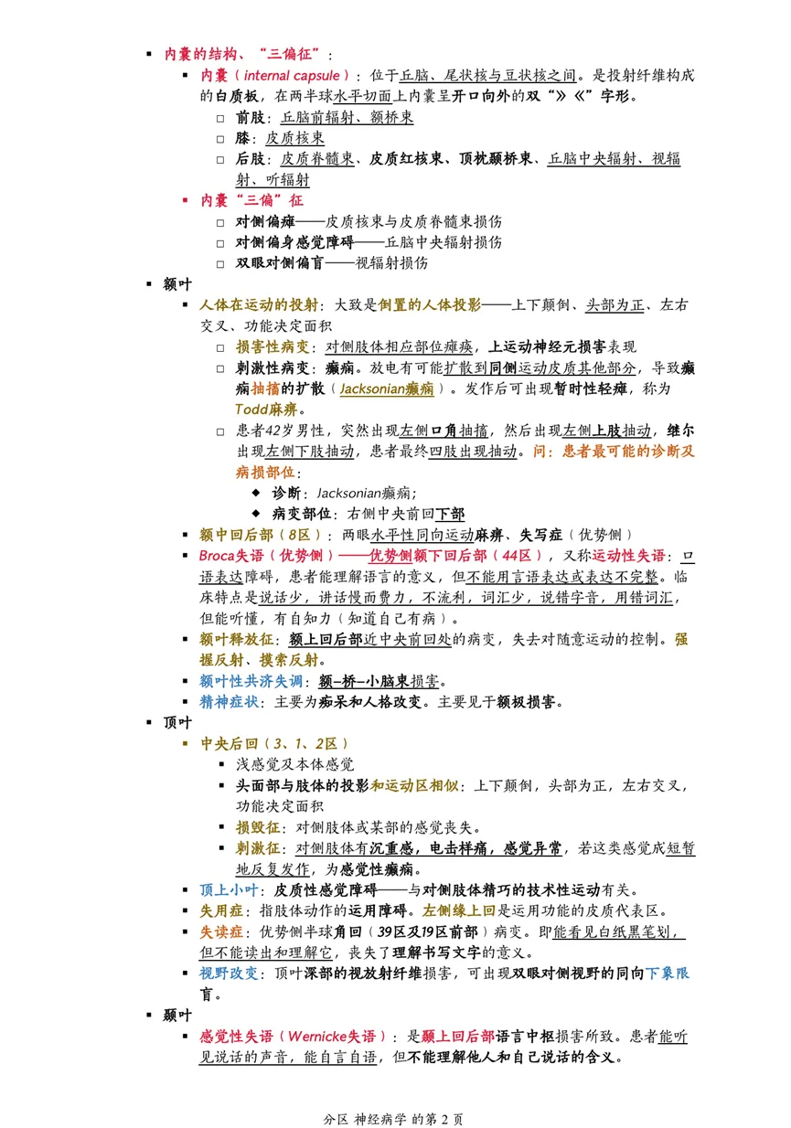 《神经病学(2024春)》的课程笔记,很多色彩的一页