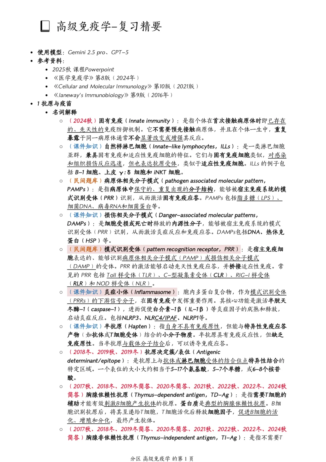 博士课《高级免疫学(2025秋)》的课程笔记,应该是我很成熟、很高质量的一份笔记了