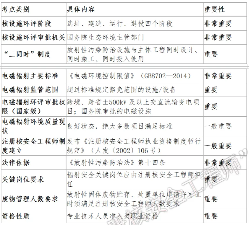 1.《中华人民共和国放射性污染防治法》第十四条:国家对从事放射性污染防治的专业人员实行资格管理制度。该制度即为注册核安全工程师执业资格制度。