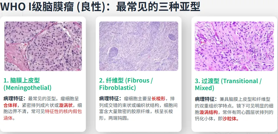 1级亚型:常见有上皮细胞型、纤维型、过渡型,还有沙砾体型、血管瘤型、微囊型、分泌型等偶尔碰到。