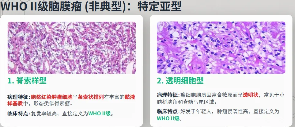 2级亚型:包括非典型、透明细胞型、脊索样等。