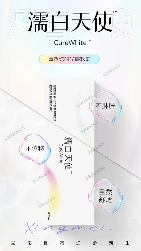避免透光问题:与传统的透明质地填充材料相比,濡白天使采用乳白色的复合凝胶,这一独特配方使得其在填充后效果自然,与肌肤完美融合,无透光的尴尬感。