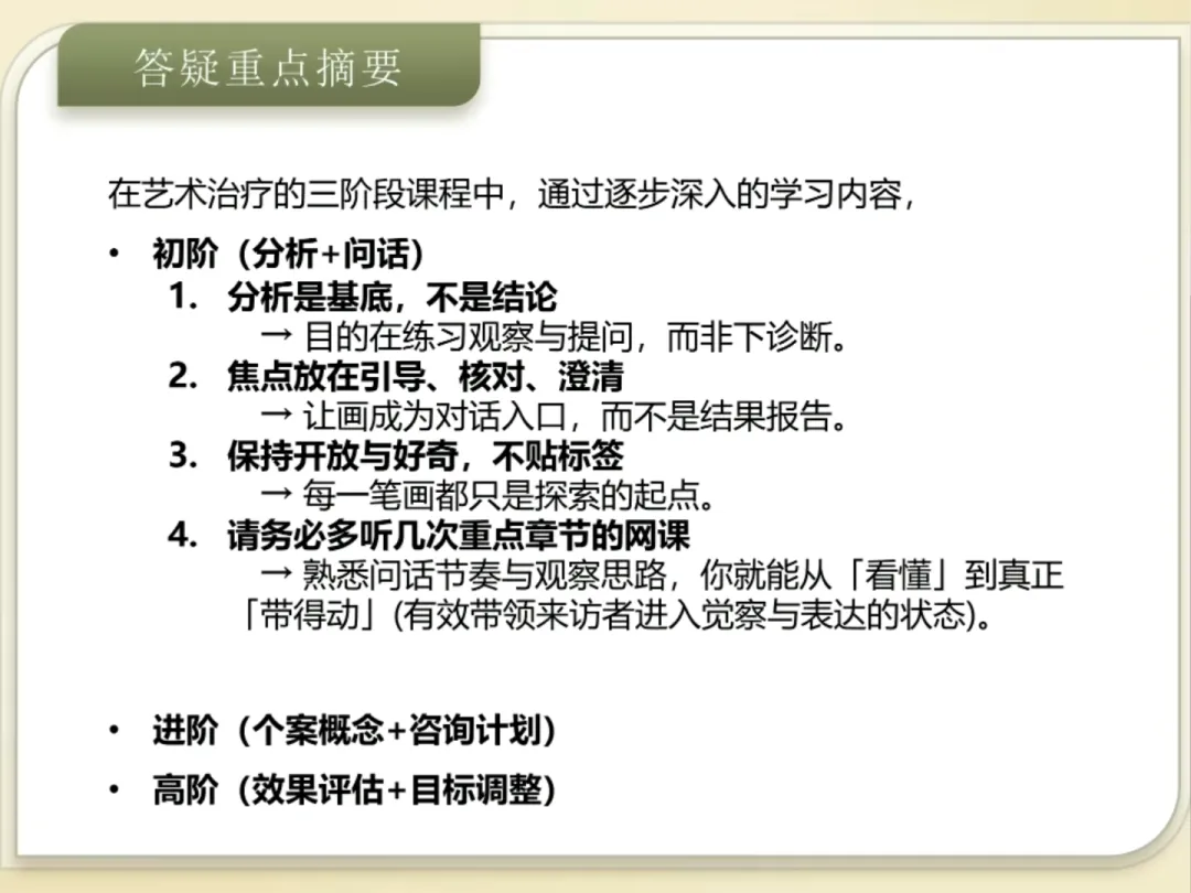 心理咨询师学习笔记82:绘画艺术治疗总结答疑(章玉娟)