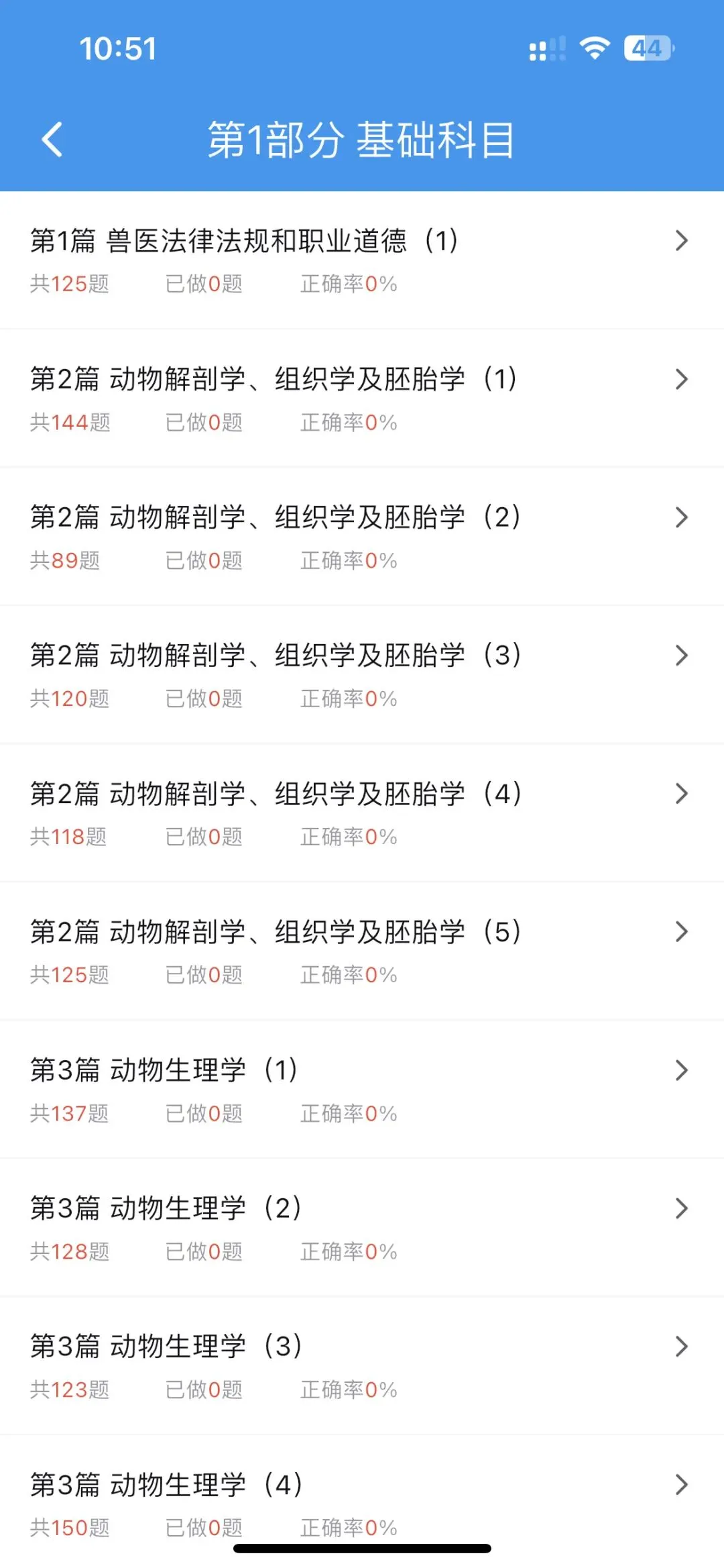 1. 基础科目:法律法规、解剖、生理、生化、病理、药理