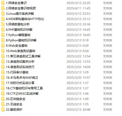 朋友们如果有需要全套《网络安全入门+进阶学习资源包》,可以扫描下方二维码免费领取(如遇扫码问题,可以在评论区留言领取哦)~