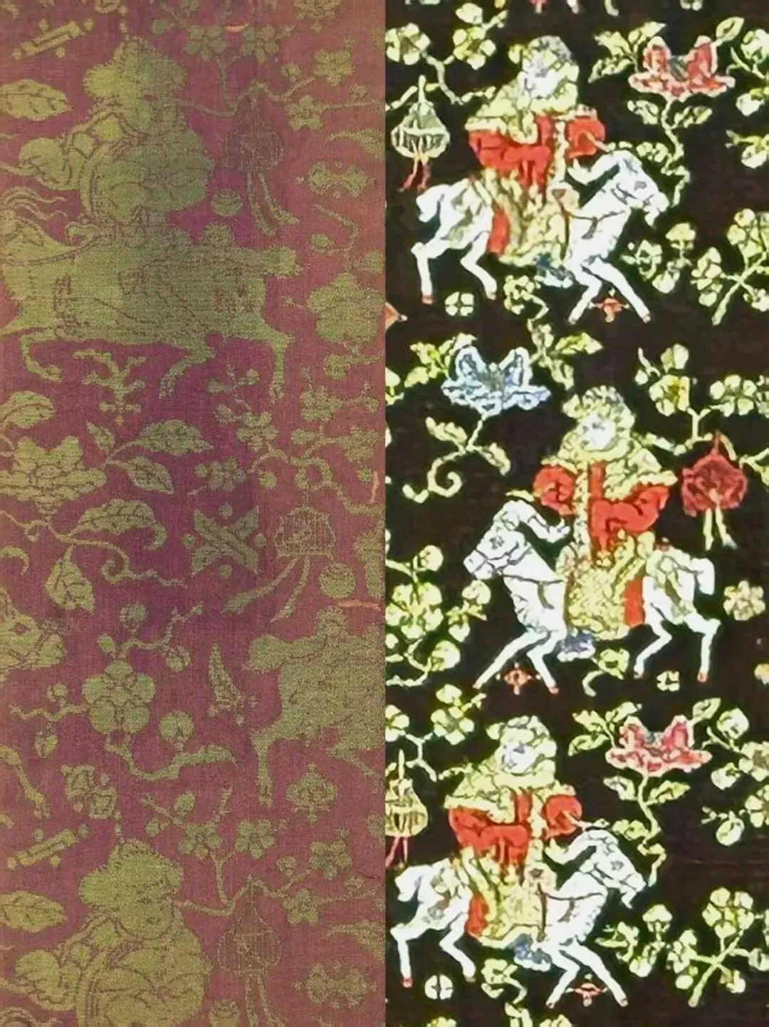 明代创新独创纹样,主打百子吉祥。专属蜀王府,多用于贵族婚庆、添丁纳福。纹样:童子骑羊、折枝缠花、寓意吉庆。绵羊代表三阳开泰,梅枝寓意梅开五福、福气临门,整体多子多福、家宅兴旺,是明代独有的吉祥锦。