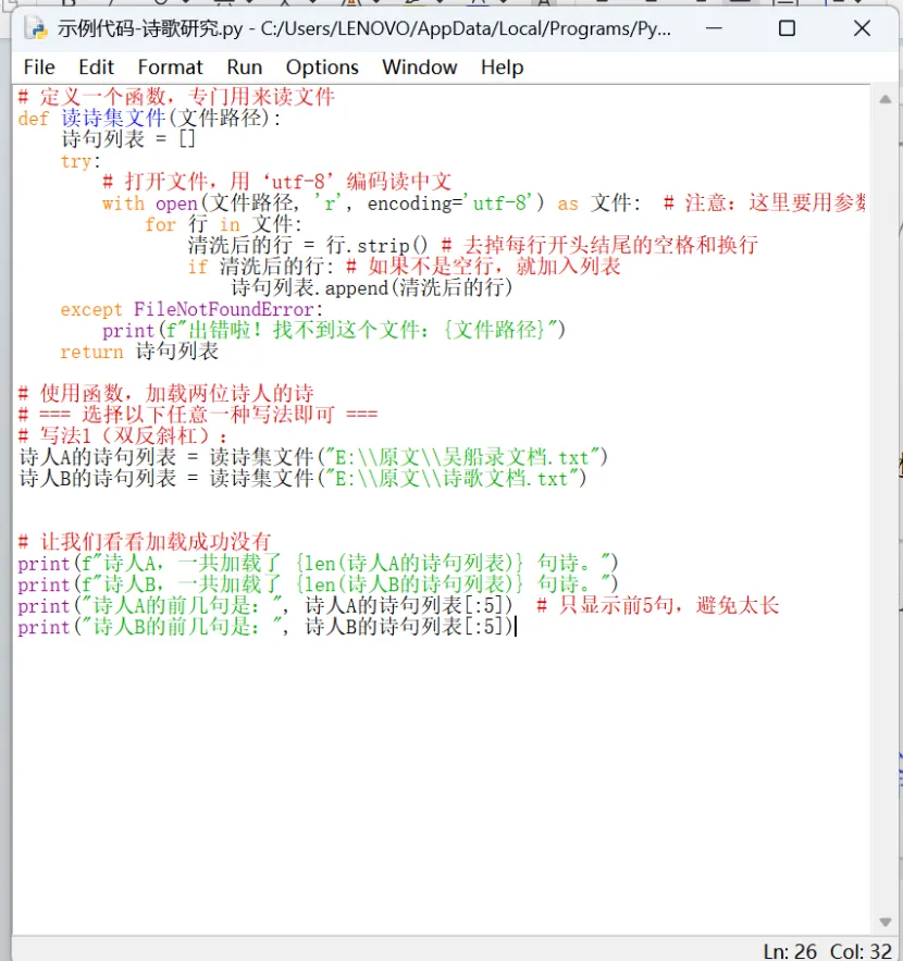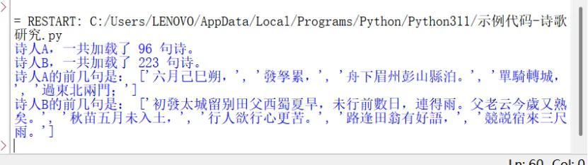 1.找两首小诗做实验:不要一开始就用《全唐诗》。找两位诗人各10-20首代表作,手动整理到一个txt文件里(每行一句)。