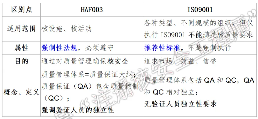 结论:仅执行ISO9001不能满足核质保要求。已取得ISO9001认证的企业,需识别并补充完善HAF003的额外要求。