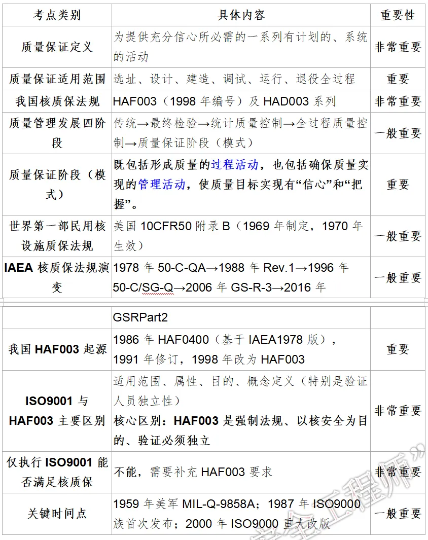 我国核质保法规基础:参照IAEA推荐的《核电厂质量保证安全规范》(50-C-QA,1988年版),结合国情制定了《核电厂质量保证安全规定》(HAF003)及其安全导则HAD003系列。